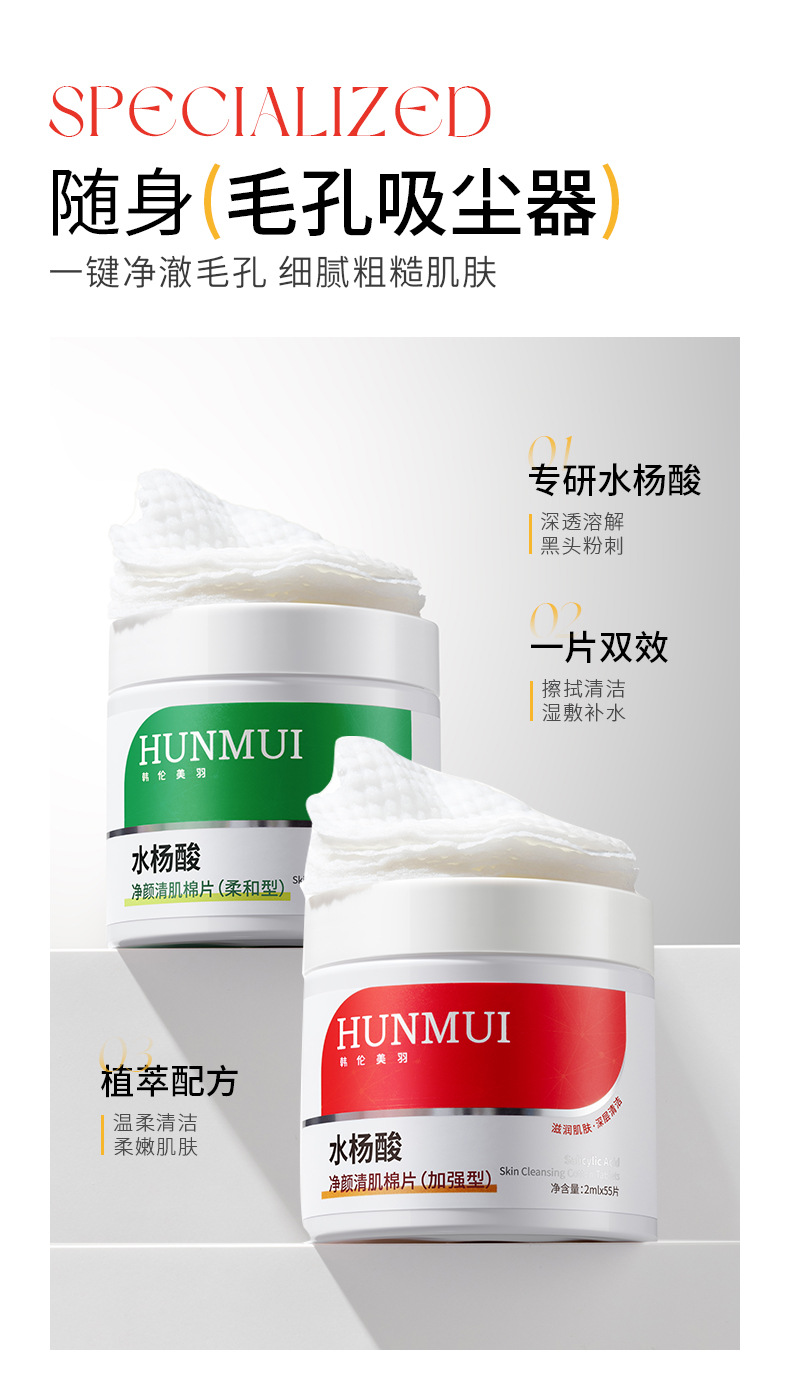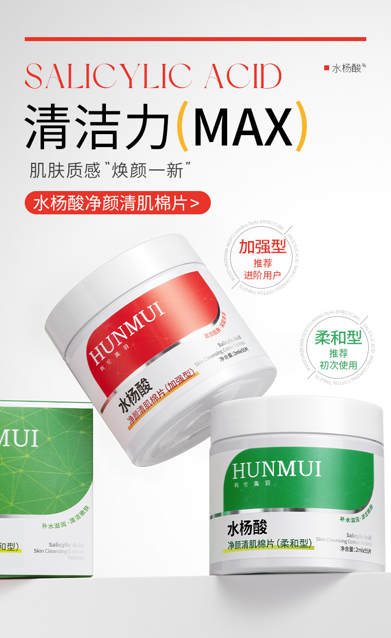 Han Lun Meiyu Салициловая кислота Очищающая мышцы Хлопковые таблетки Восстанавливающая акне Увлажняющая патч-маска для очищения пор