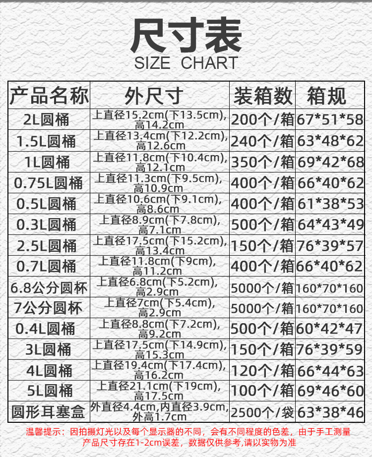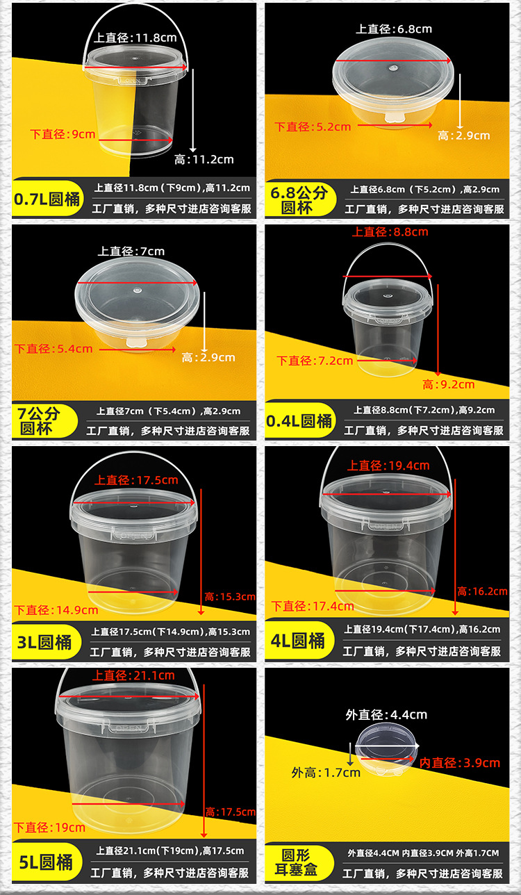 2L круглый барабан; Ствол 3л; 4л ствол; 1.5L круглый барабан; 1L круглый барабан; Ствол 2,5 л; круглый ящик для затычек для ушей; Ствол 0,5 л; Барабан 0.3L; 5л ствол; Барабан 0.75L; 6.8cm круглая чашка; ствол 0,7 л; 7cm круглая чашка; ствол 0,4 л