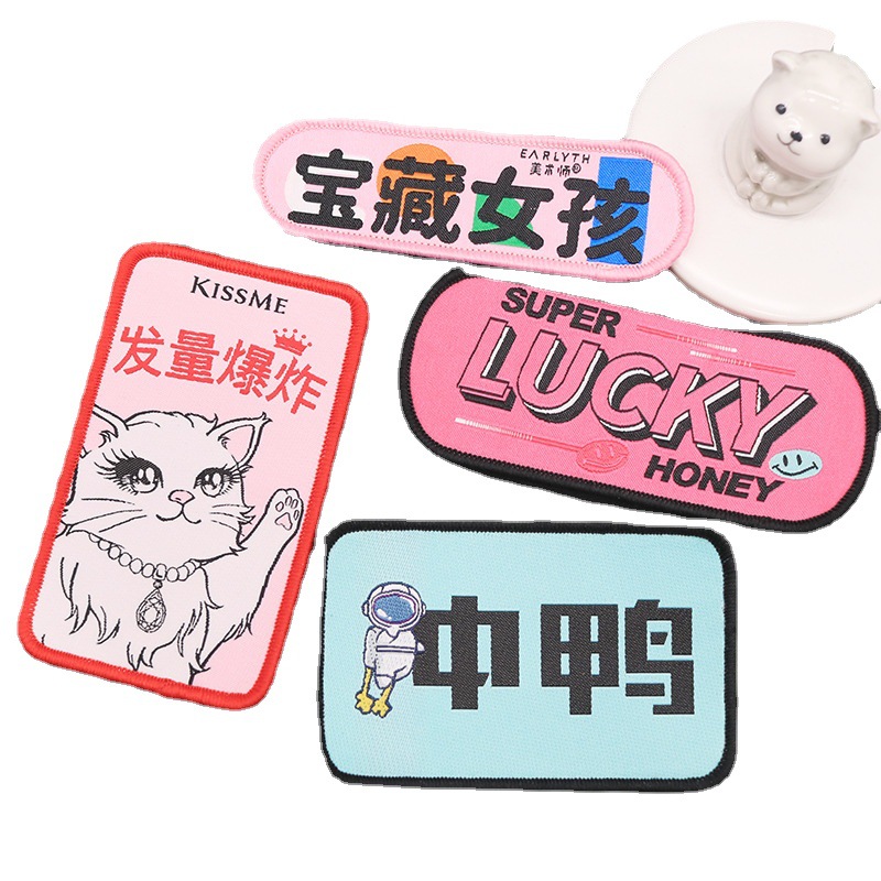 Наклейки с вышитой челкой Тканые этикетки Наклейки с челкой Цифровая печать