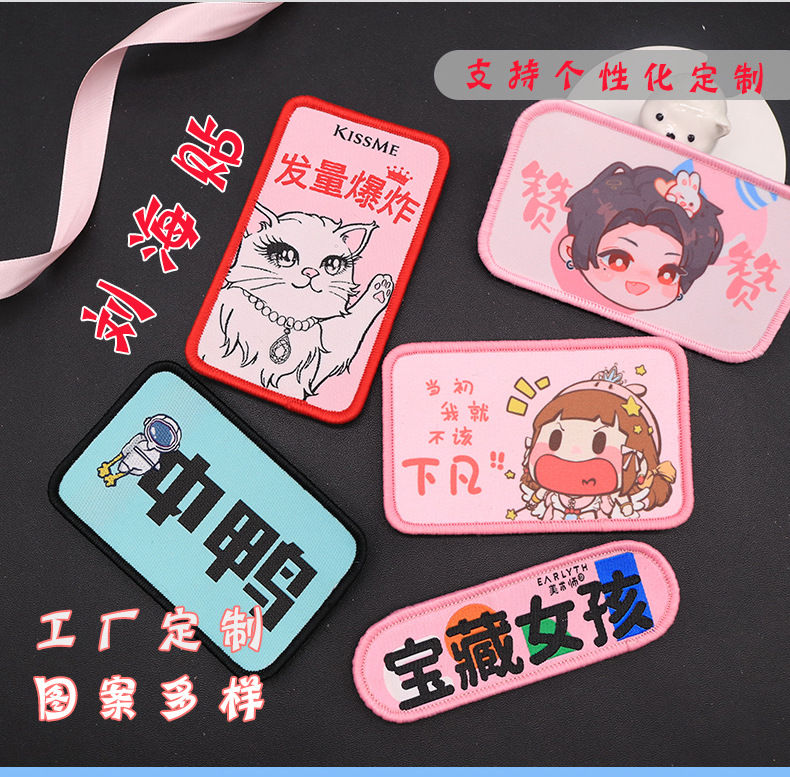 ИСТОЧНИК фабрика вышивка челка наклейки текст сломанный пост тканый мультфильм милый щенок челка липучки наклейки производитель