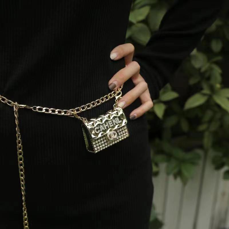 Мини-сумочка для женщин, новая модель лета 2022 года, цепочка со стразами, уникальный декоративный металлический ремень-цепочка.