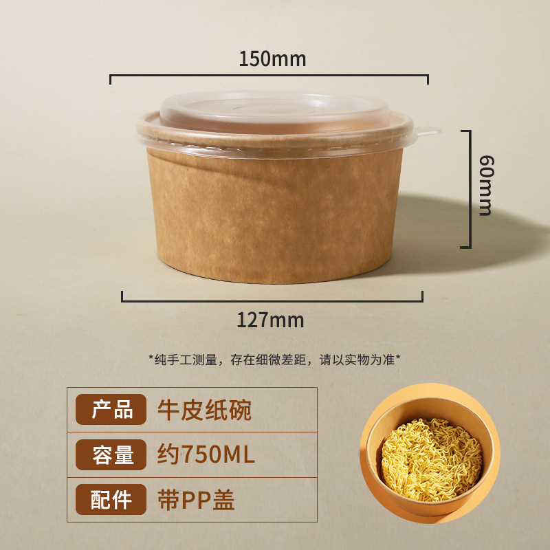 Упаковочная коробка из крафт-бумаги оптом круглая с крышкой пищевая лапша быстрого приготовления Ланч-бокс на вынос одноразовые чаши из крафт-бумаги