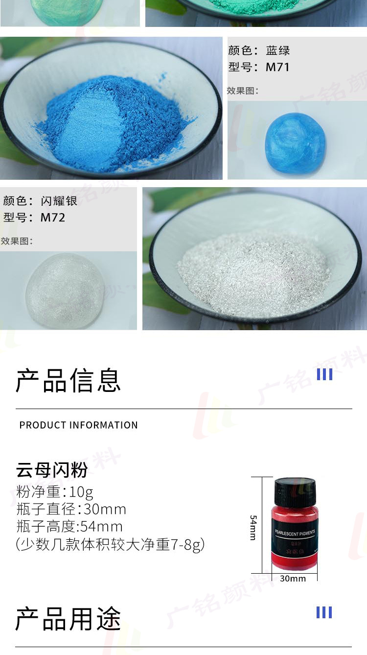 Жемчужная пудра слюдяной блеск 72 цвета Вес нетто 10 г в бутылках трансграничная амазонская конопля ручной работы Русалка Дзи