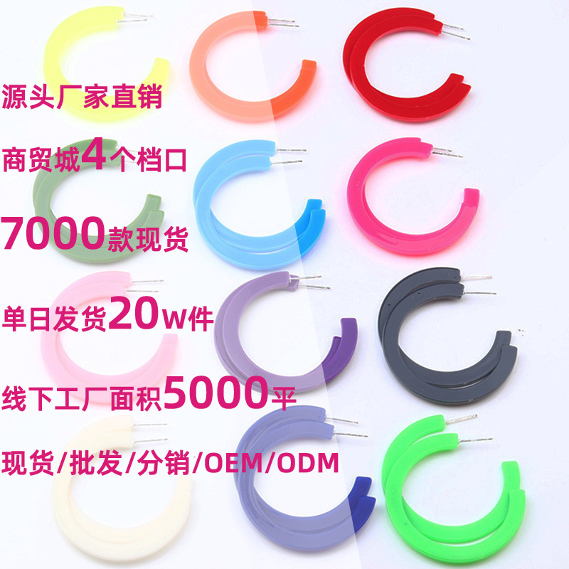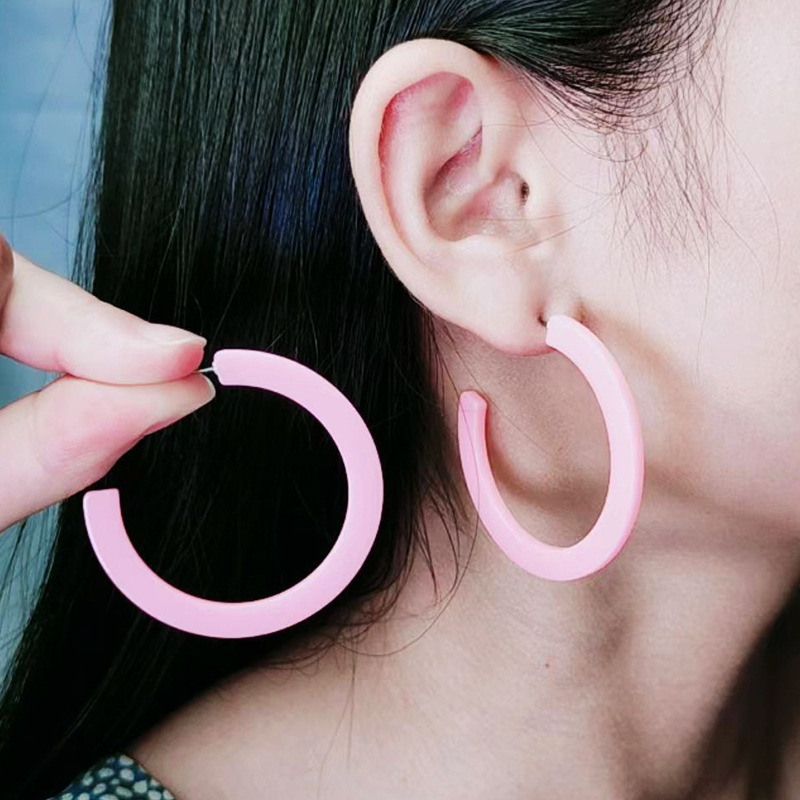 Европейский и американский стиль Простые индивидуальные 12 цветов плоские C-образные серьги-гвоздики карамельного цвета Акриловые Кольца Серьги-карамели для женщин