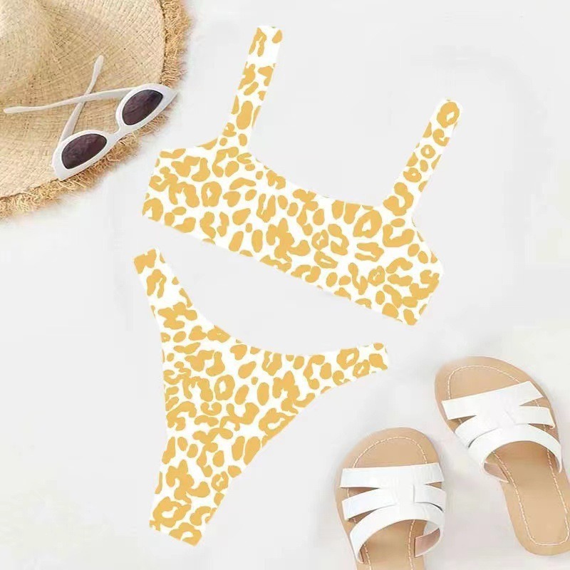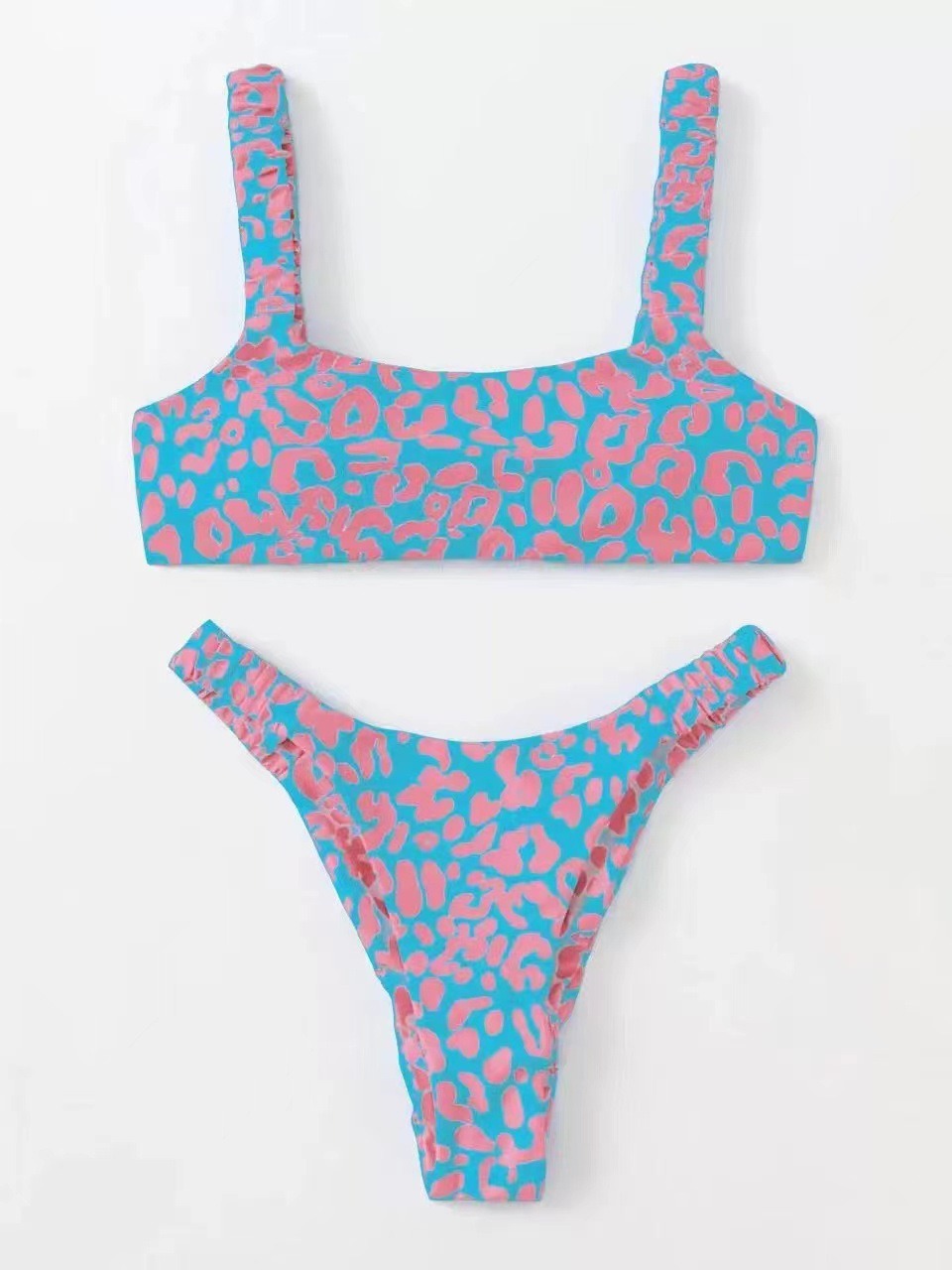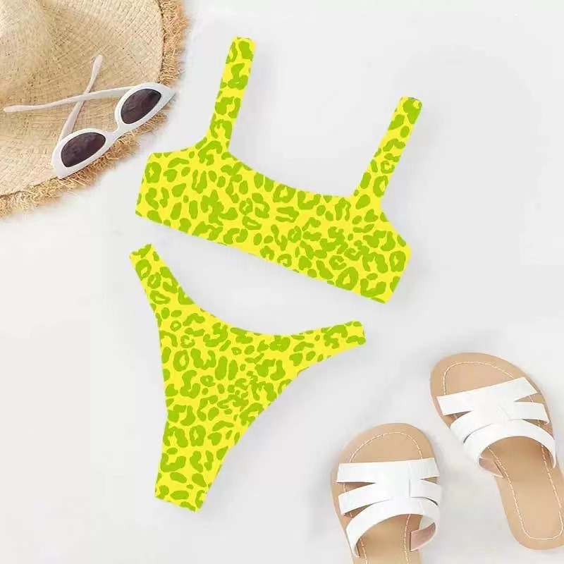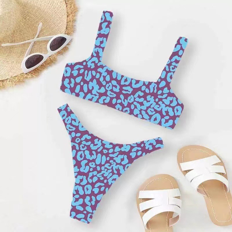 Европейский и американский трансграничный новый сексуальный многоцветный купальник с открытой спиной, женский купальник бикини с высокой талией и принтом на бретелях, Раздельный купальник-бикини