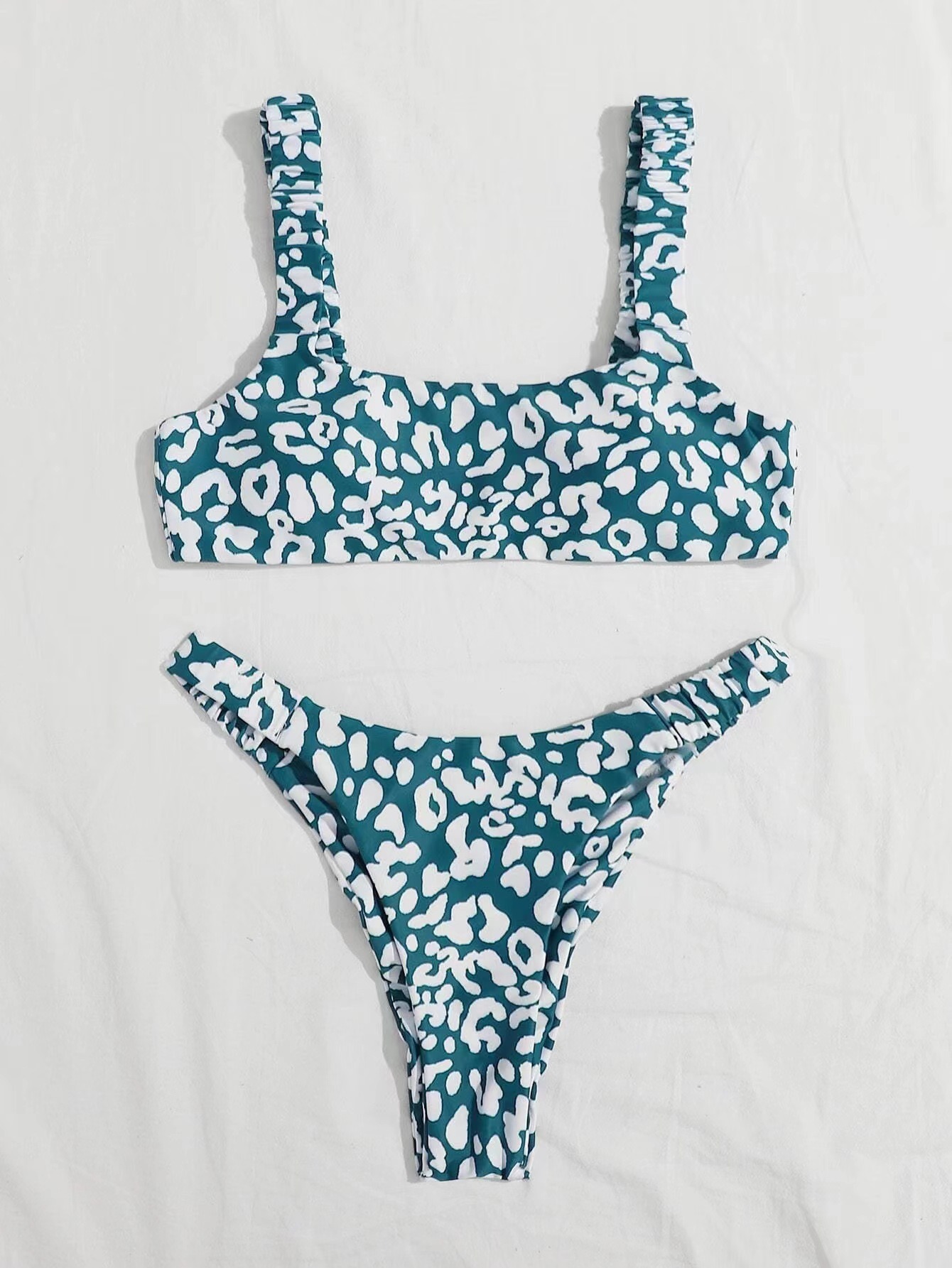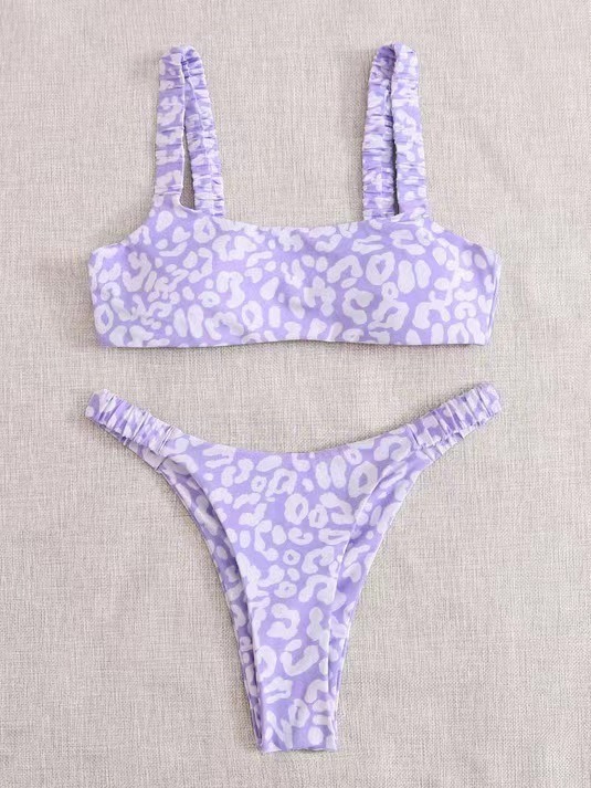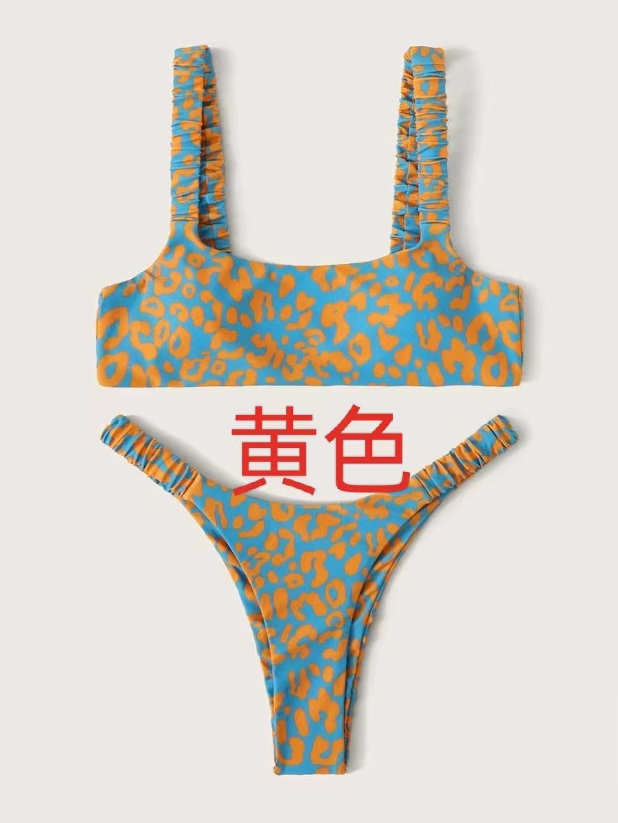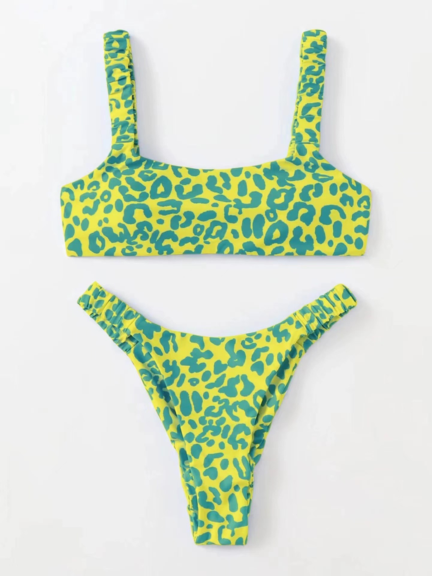 Европейский и американский трансграничный новый сексуальный многоцветный купальник с открытой спиной, женский купальник бикини с высокой талией и принтом на бретелях, Раздельный купальник-бикини