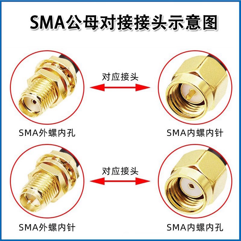 注意:SMA接头有4种类型,拍之前需仔细核对,避免拍错导致无法使用。