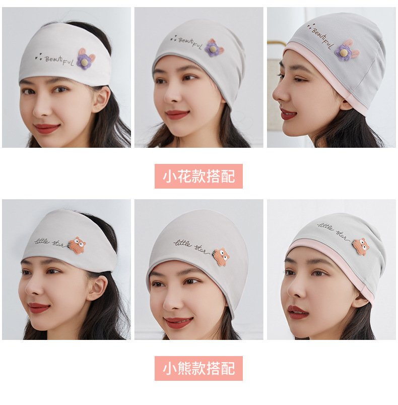 Новая хлопковая шапочка для беременных с мультяшным рисунком цветов и медведя, послеродовая шапочка для роддома.