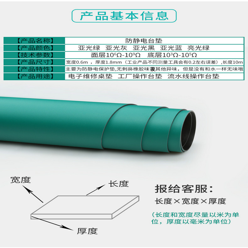厂家直销【支持一件代发】防静电台垫,防静电地板,塑胶地垫温馨提示:因产品特殊为了满足每位顾客需求,本工厂支持裁切定制任何尺寸,人工裁切会预留一点余量,一旦裁切无法二次销售,非质量问题恕不退换,请谅解!如模板上没有您要的尺寸,请与客服沟通!开票需要加收税点,没有库存的颜色请联系客服定制!下单请联系客服核算具体运费,直接拍下,导致亏本我们有权不发货!!