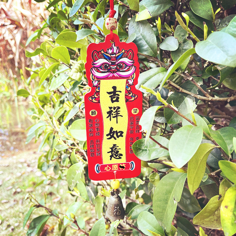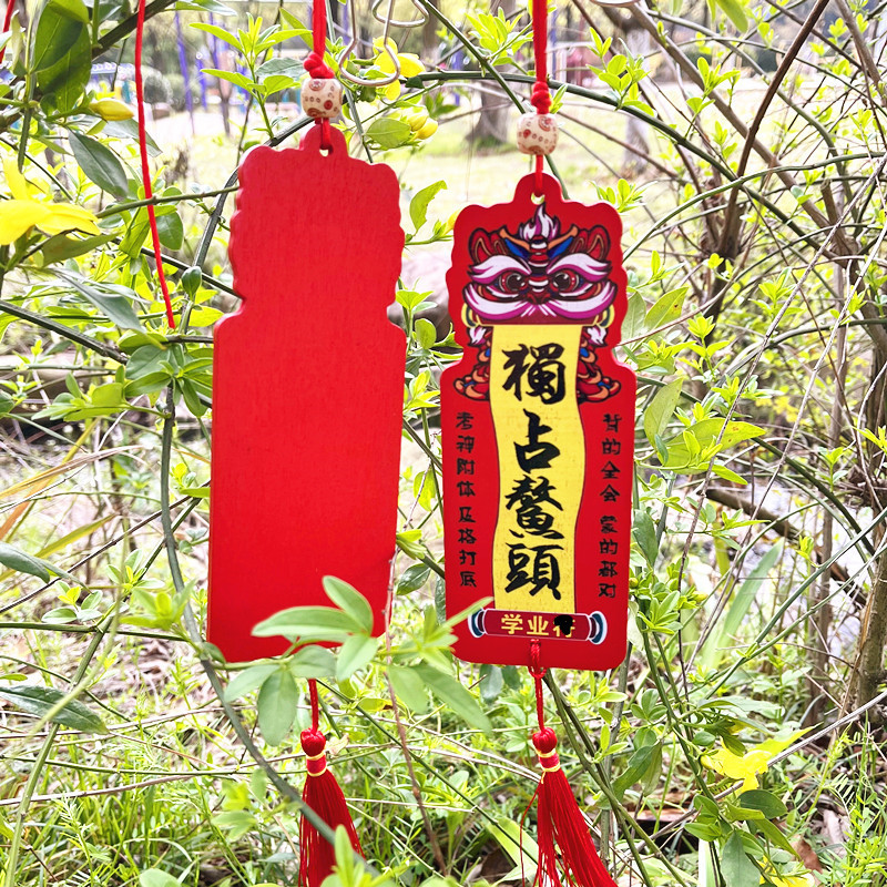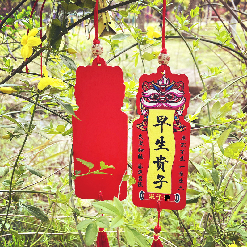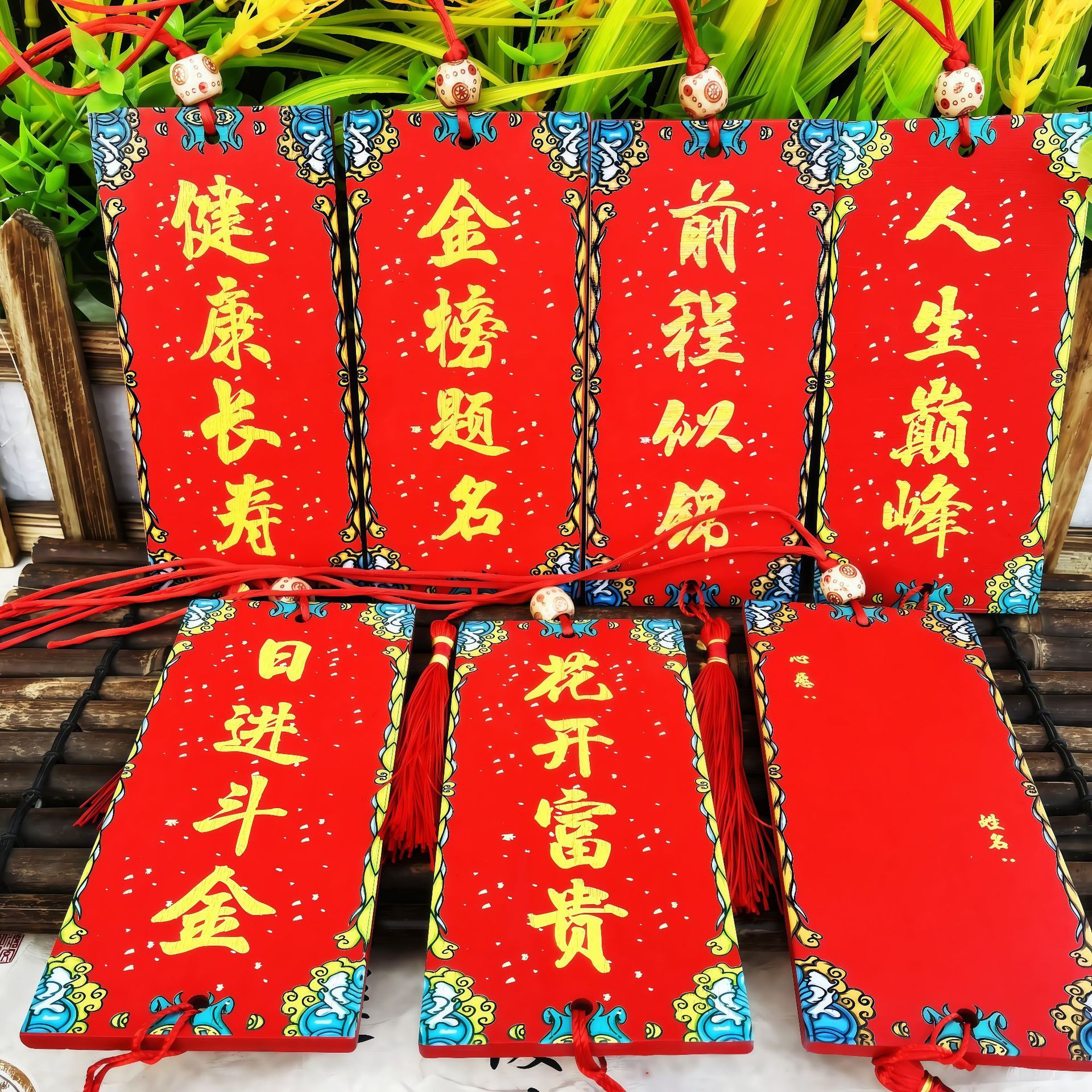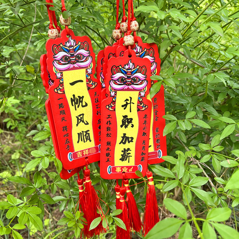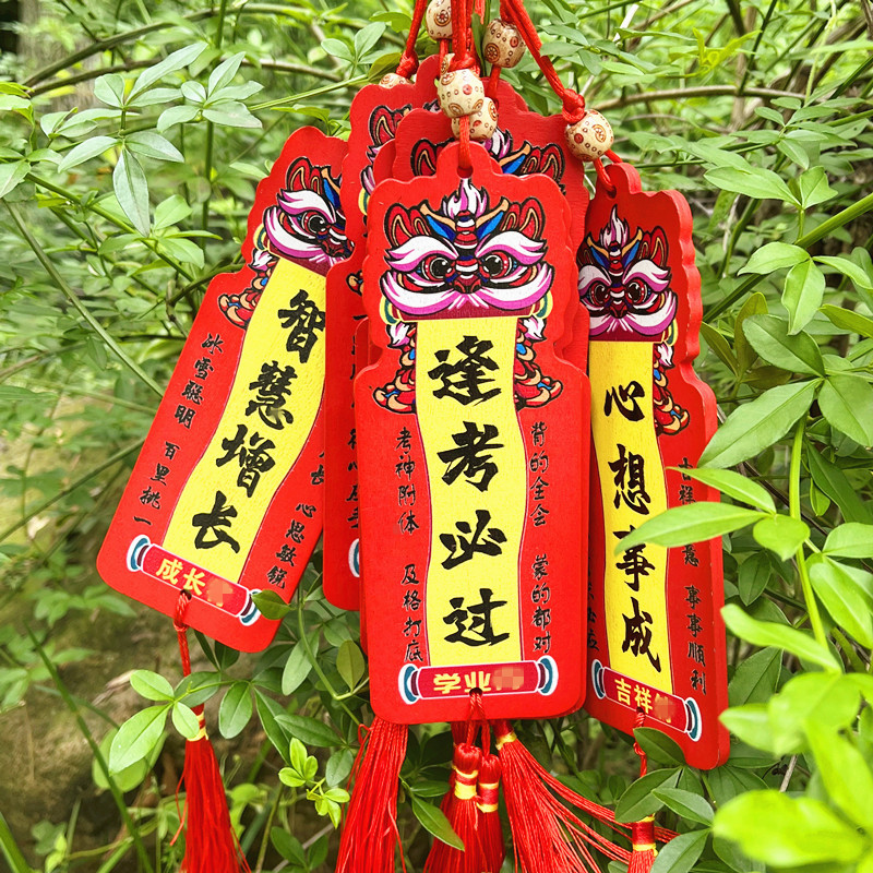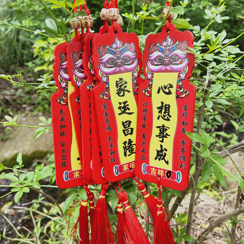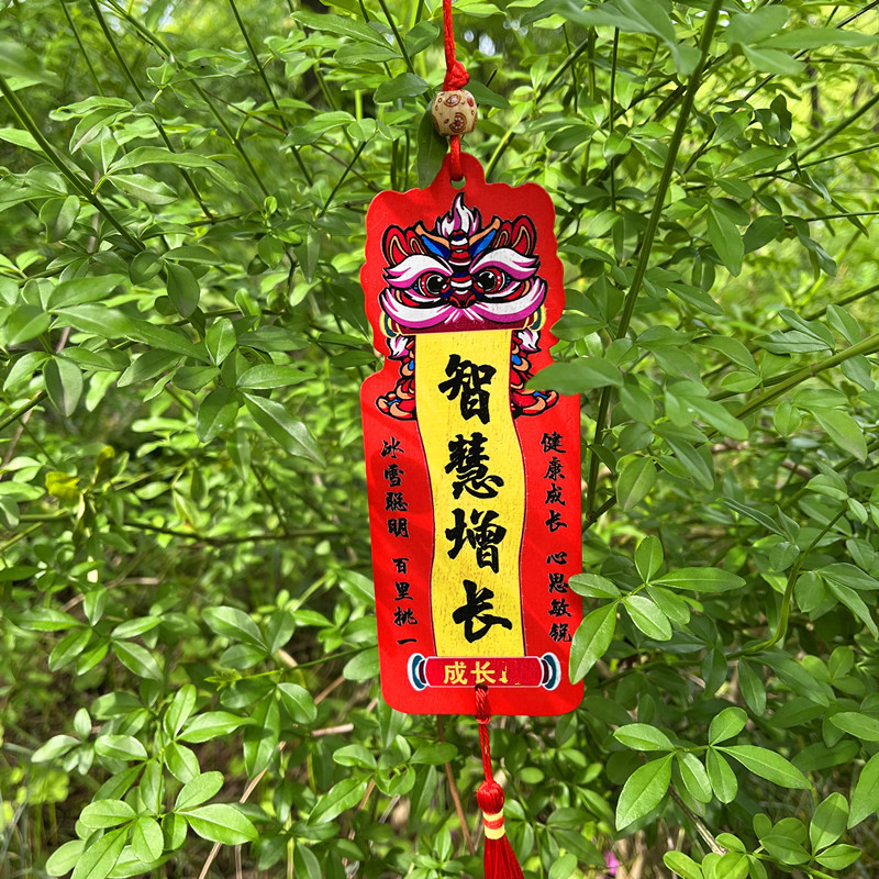 Красная длинная голова тигра, версия молится для желаний, деревянный знак, туристический живописный пятно, школьный стиль, детский сад с логотипом для печати