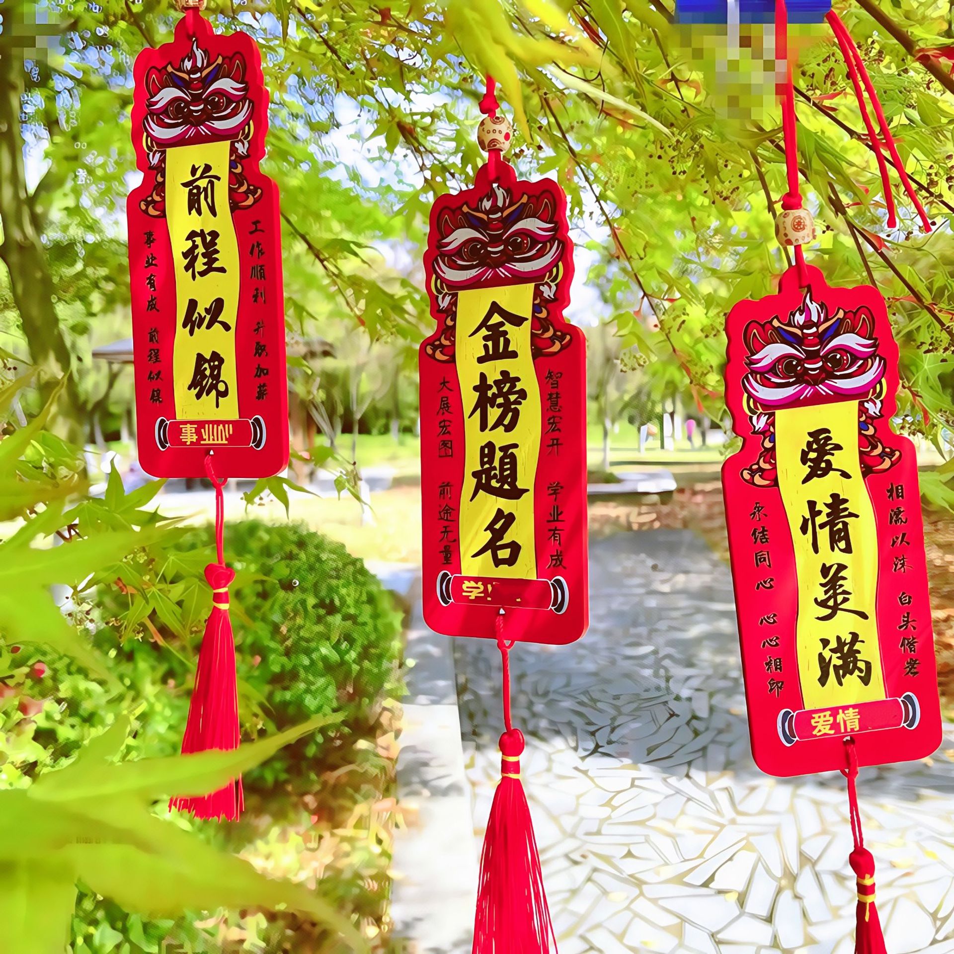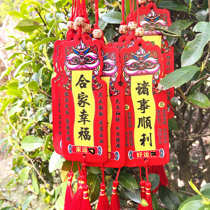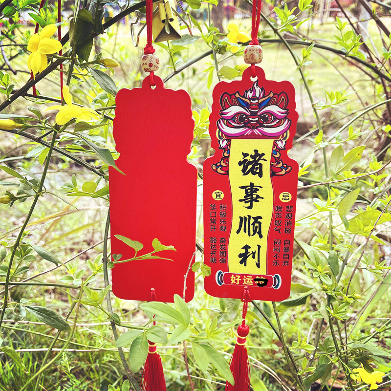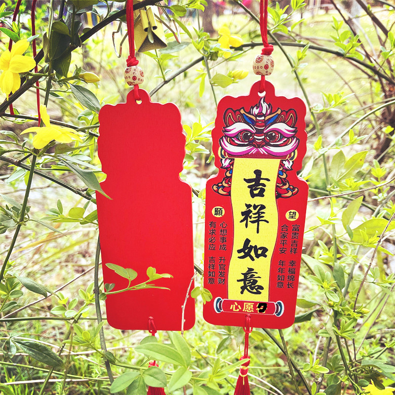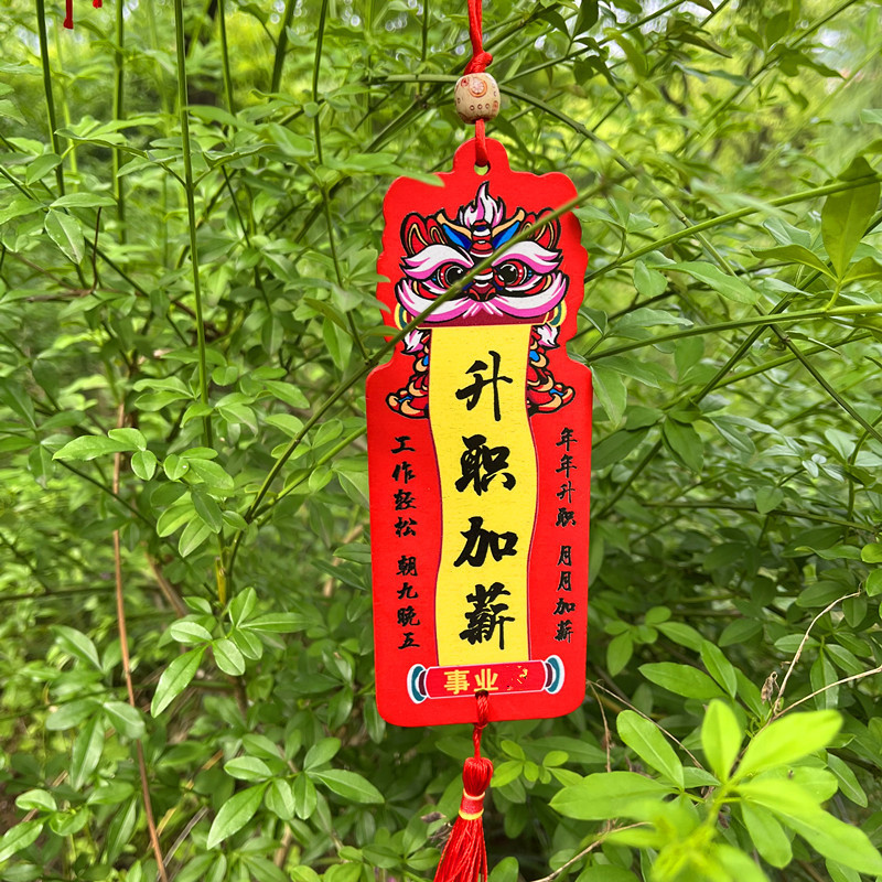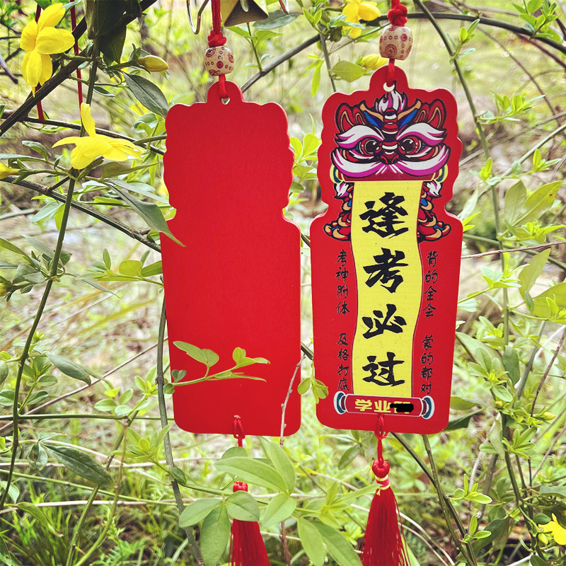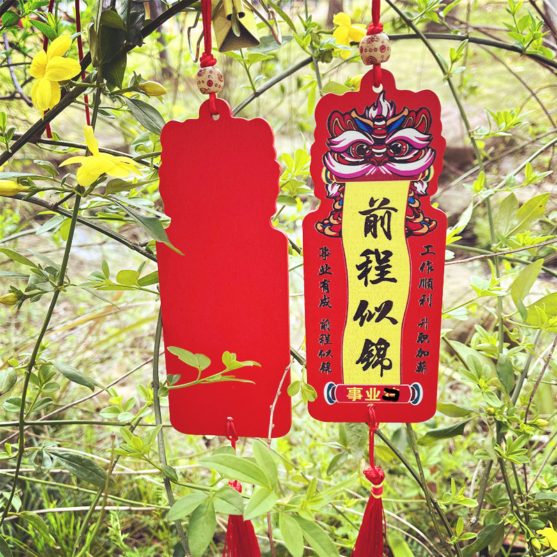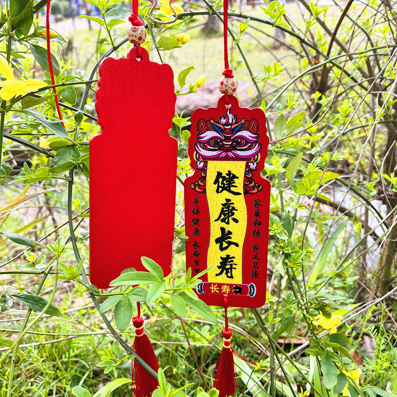 Красная длинная голова тигра, версия молится для желаний, деревянный знак, туристический живописный пятно, школьный стиль, детский сад с логотипом для печати