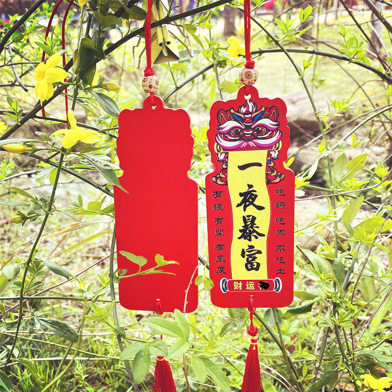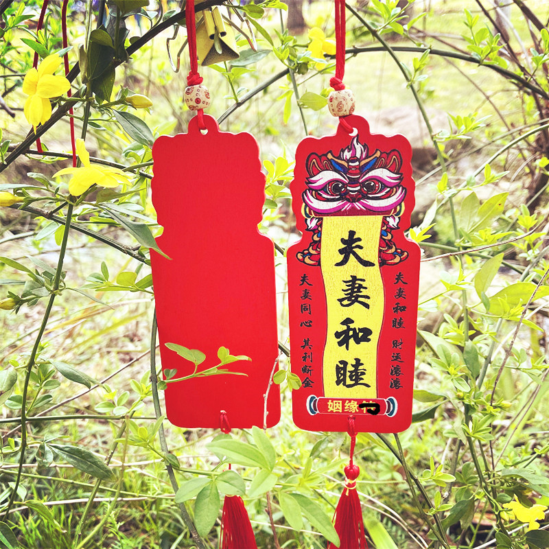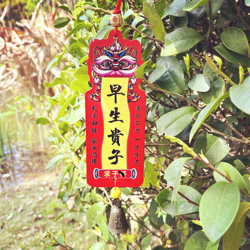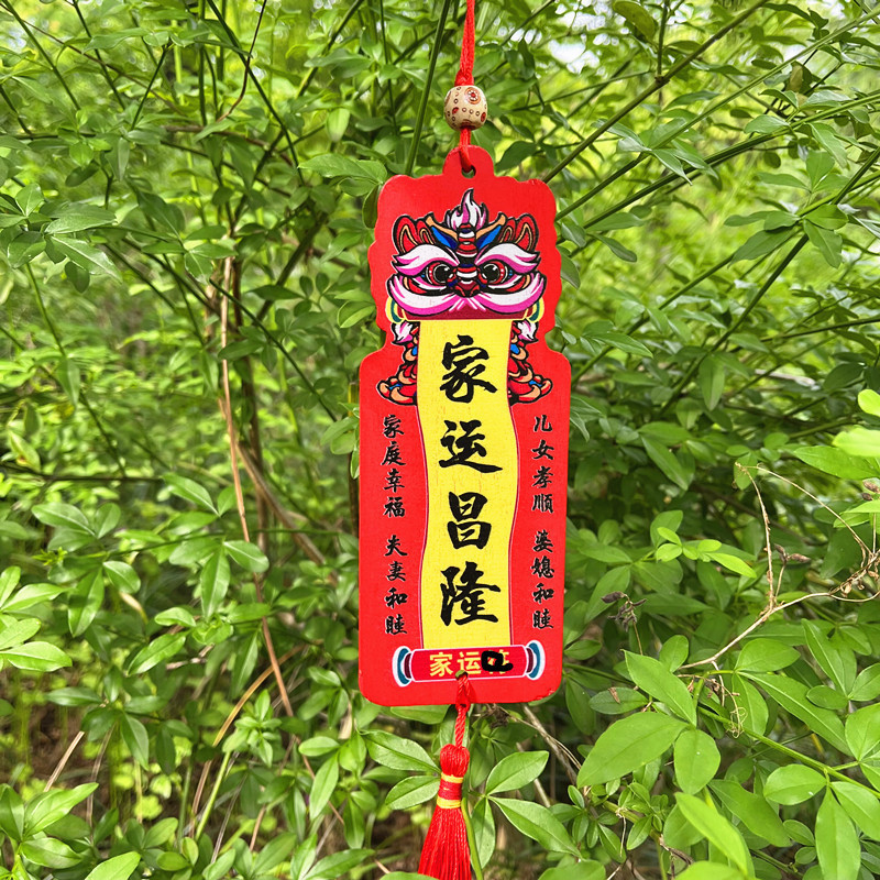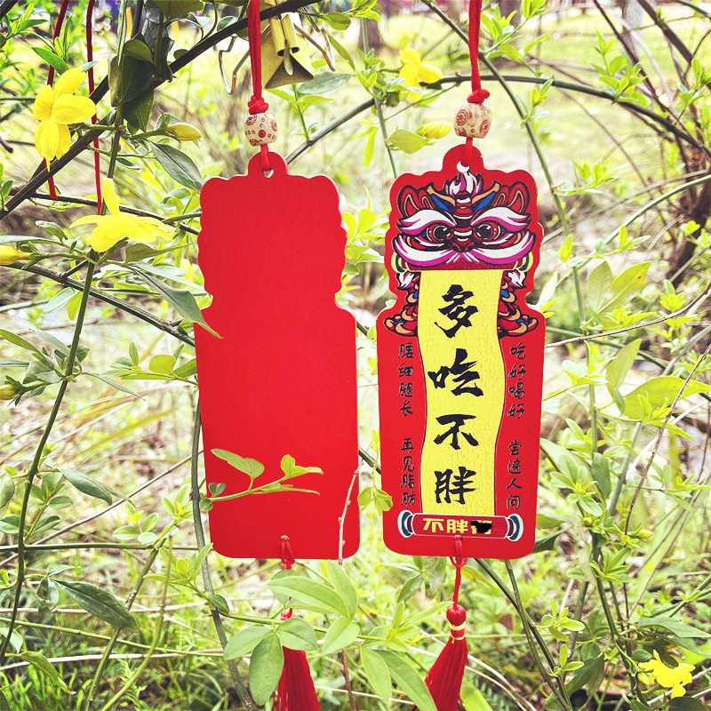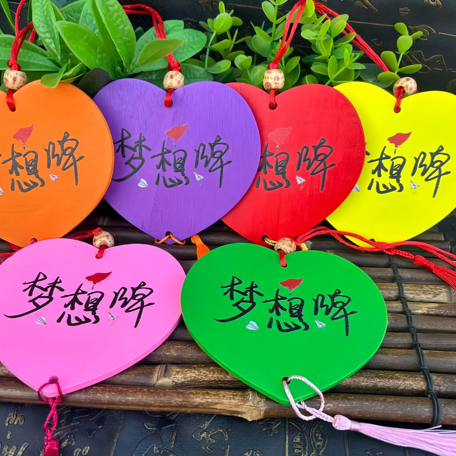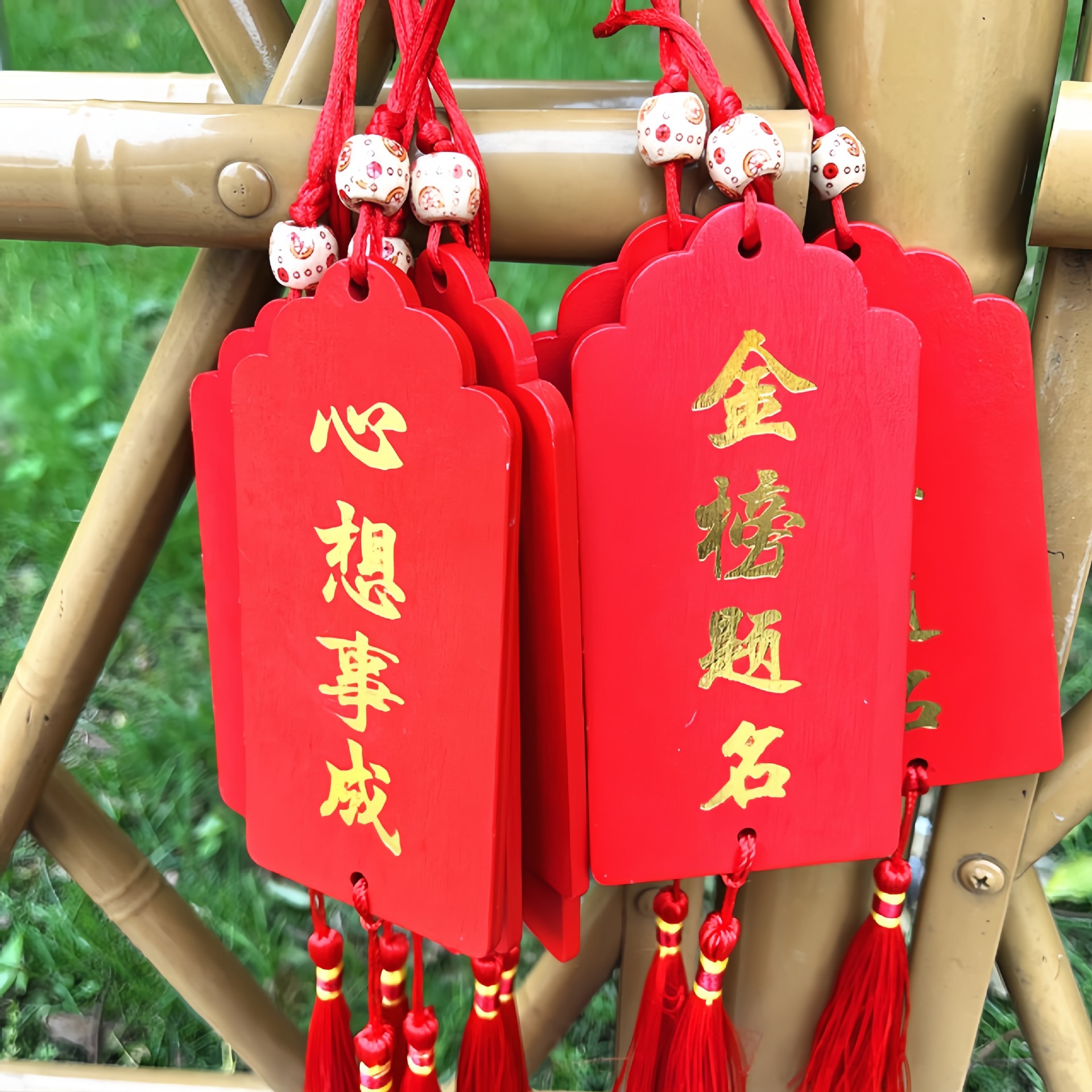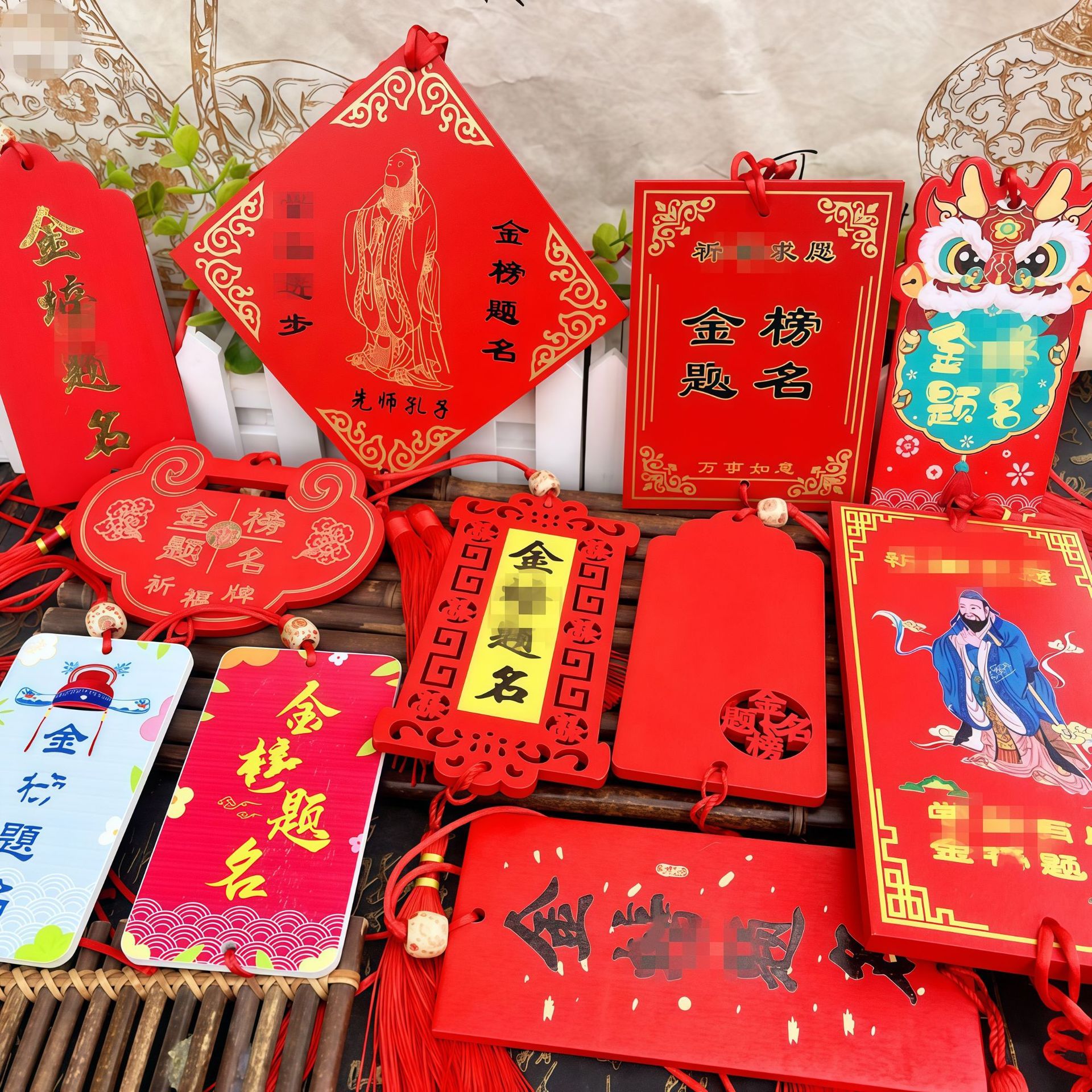Красная длинная голова тигра, версия молится для желаний, деревянный знак, туристический живописный пятно, школьный стиль, детский сад с логотипом для печати