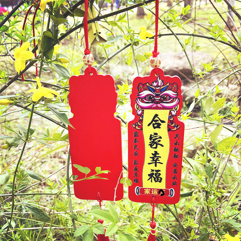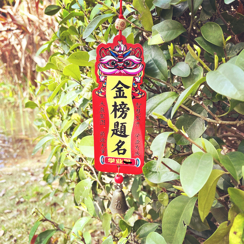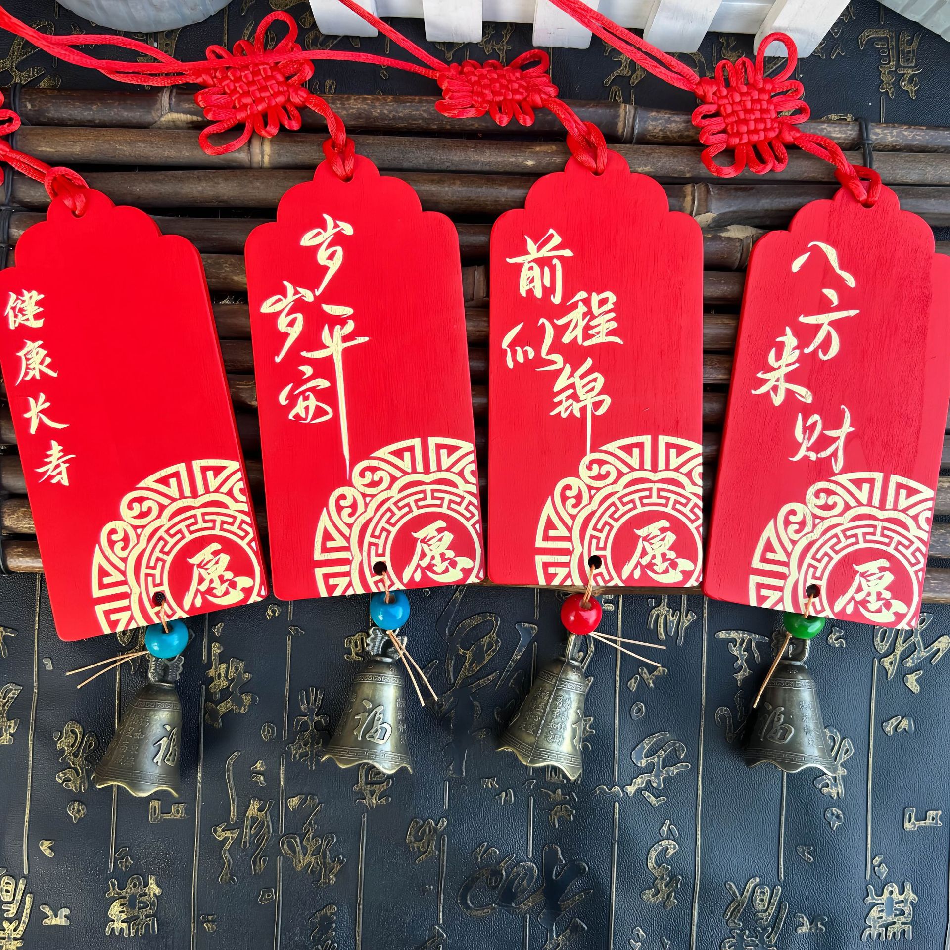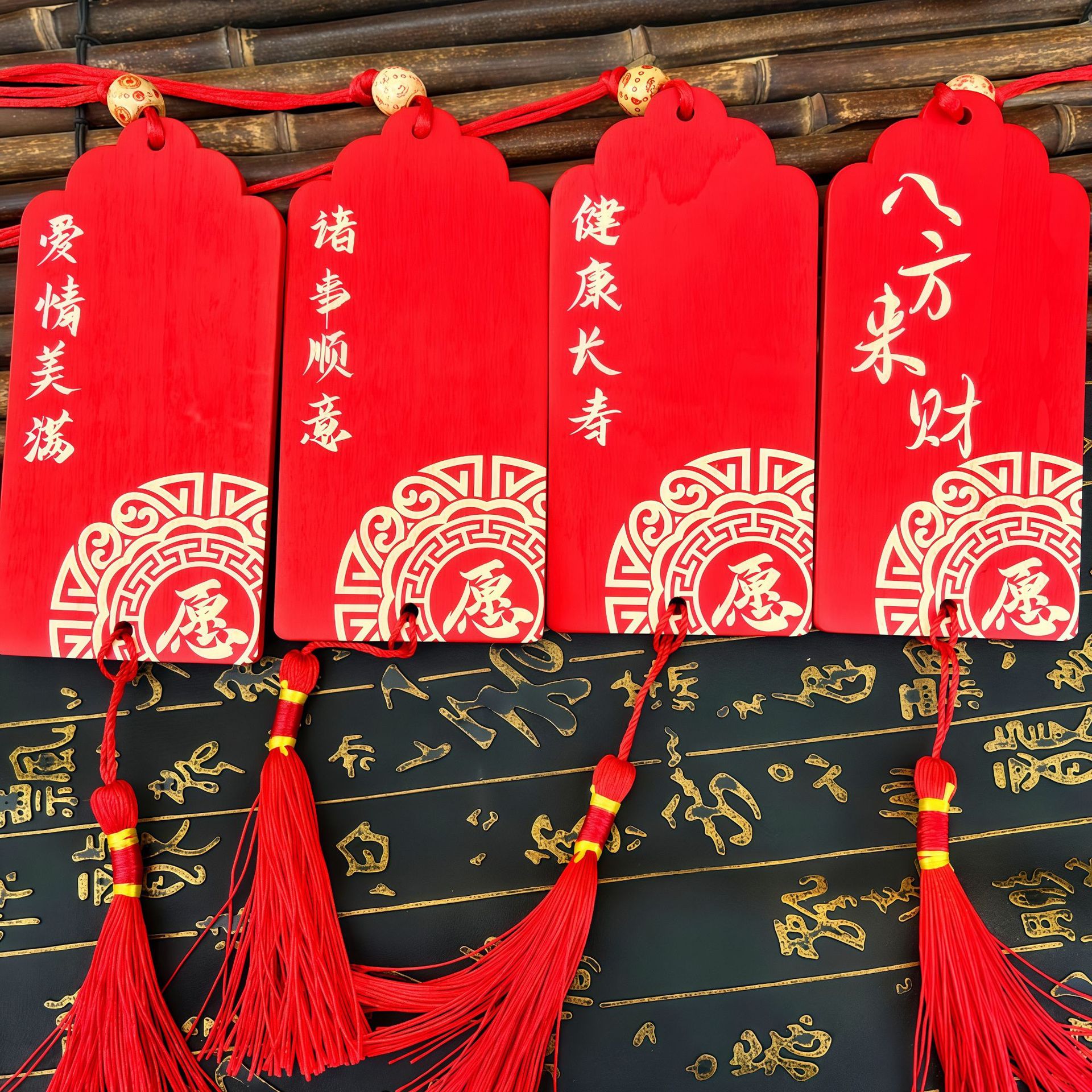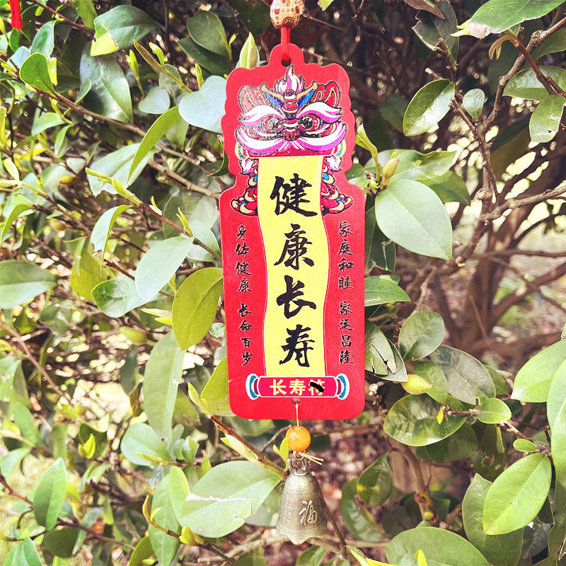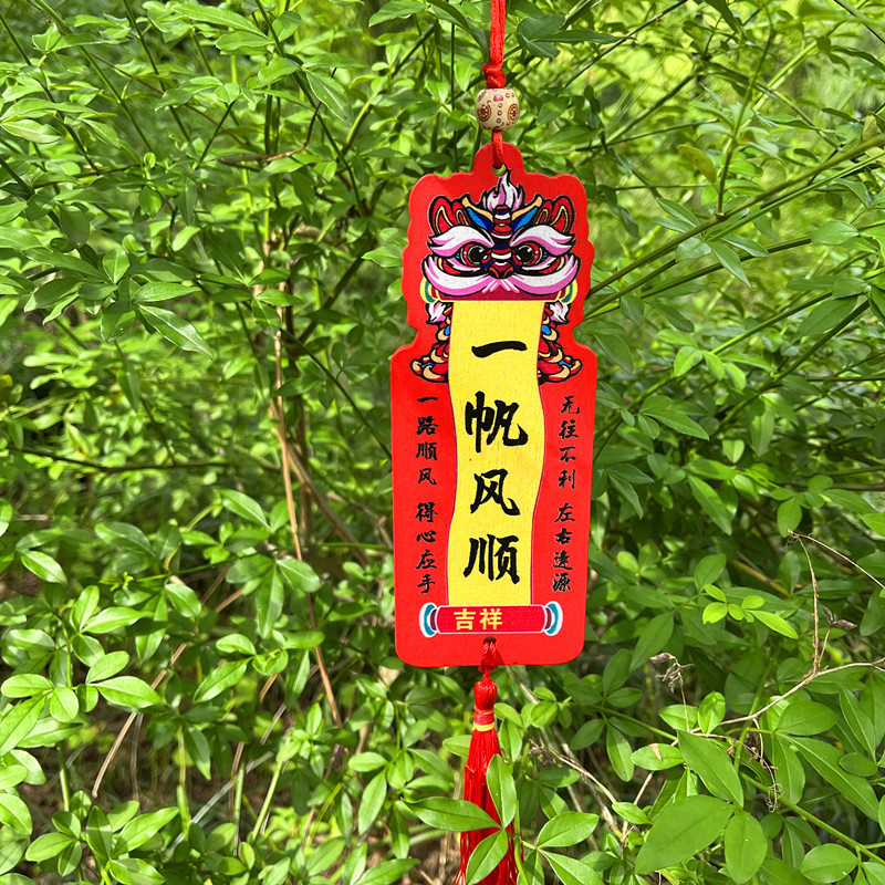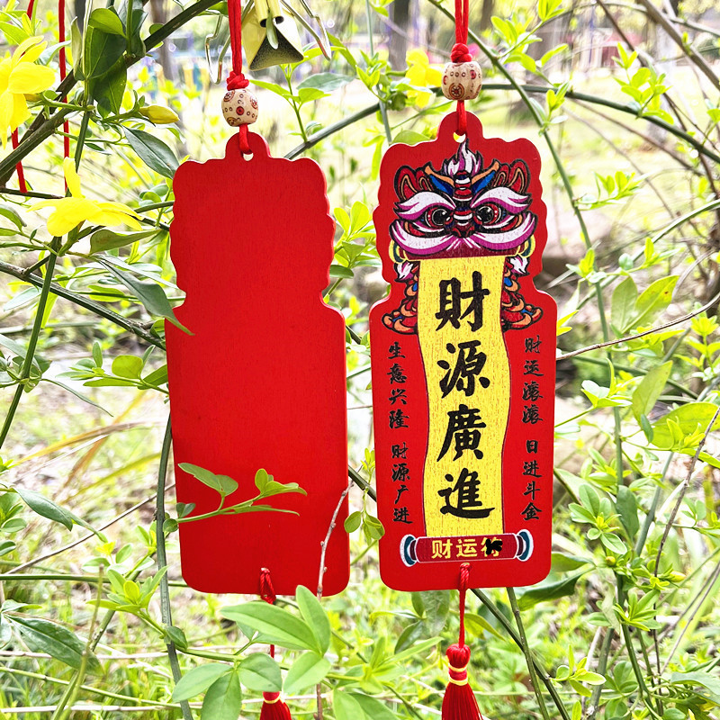 Красная длинная голова тигра, версия молится для желаний, деревянный знак, туристический живописный пятно, школьный стиль, детский сад с логотипом для печати