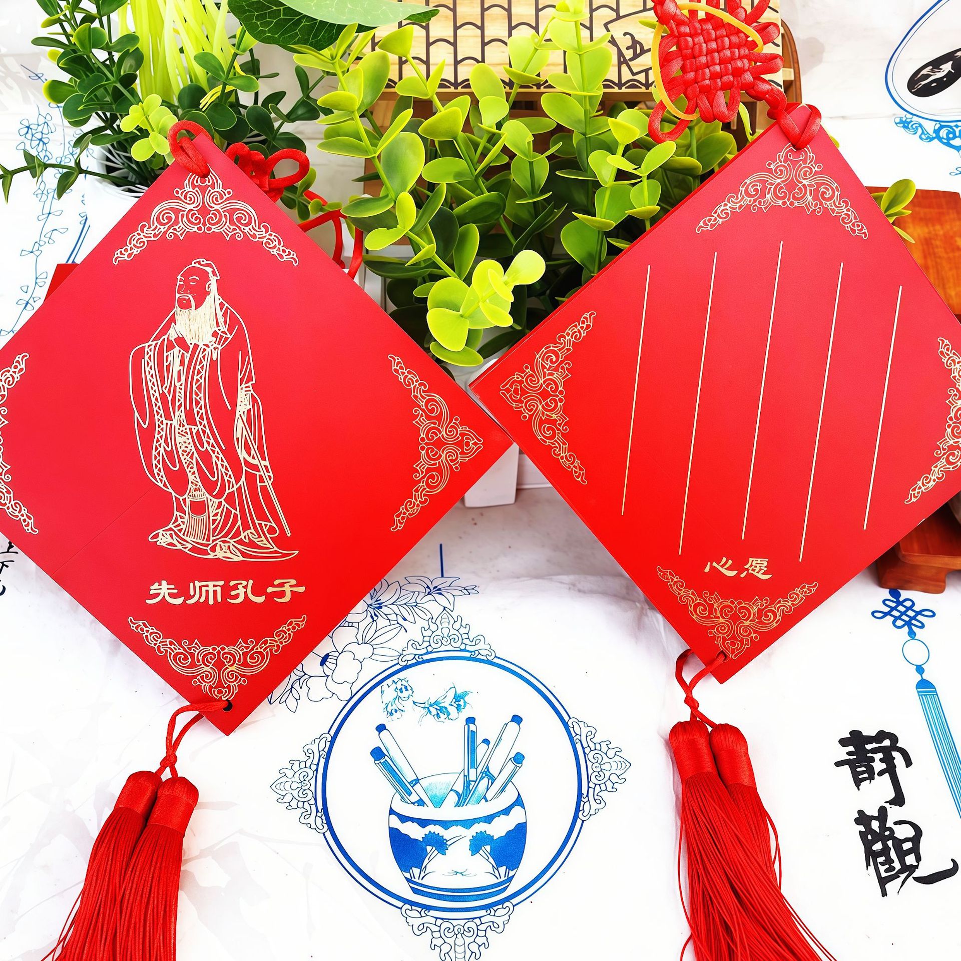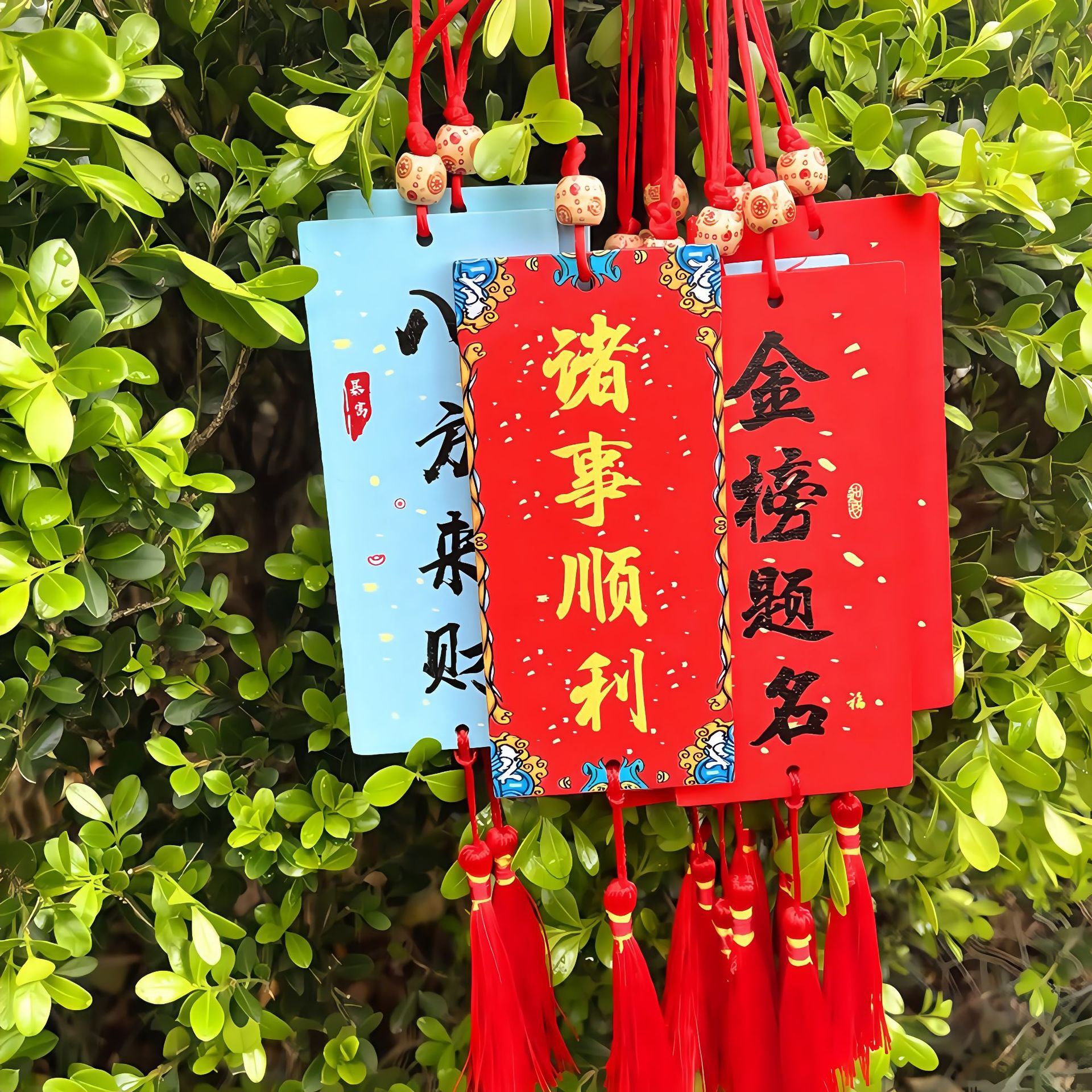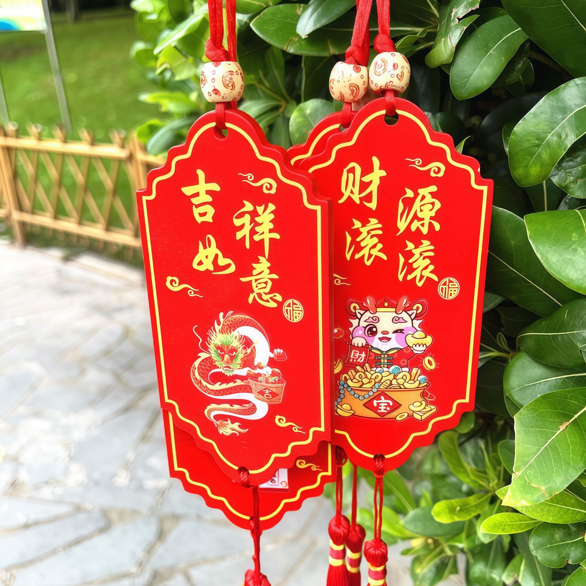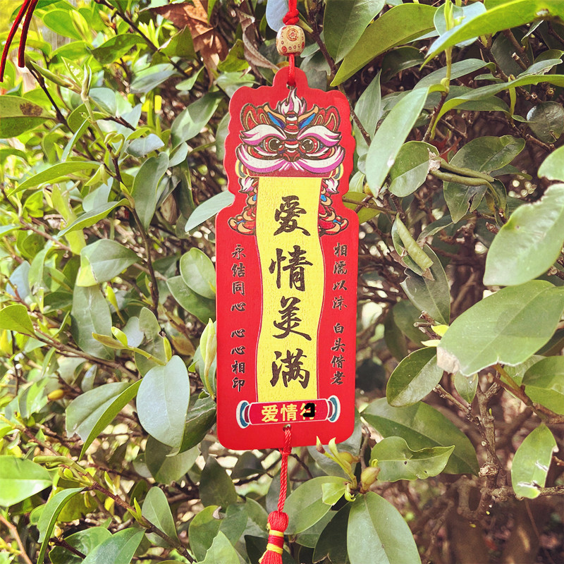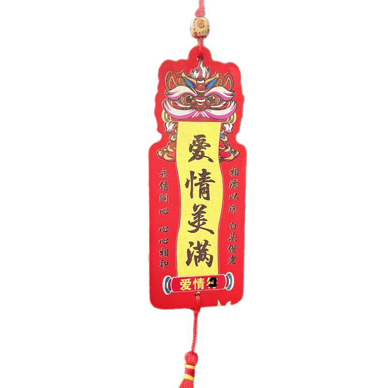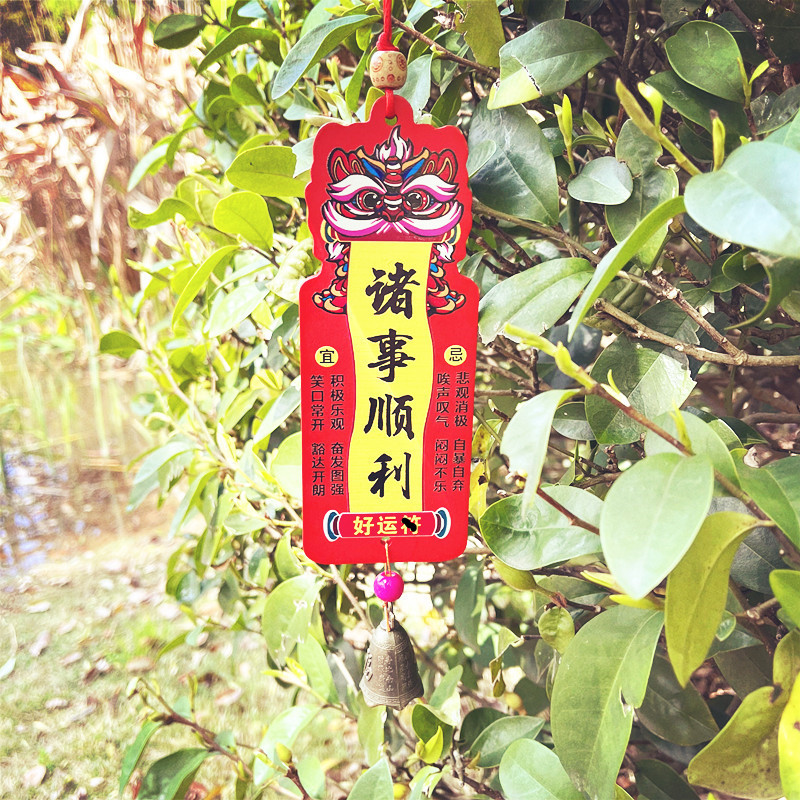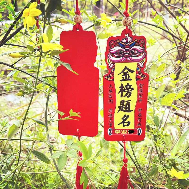 Красная длинная голова тигра, версия молится для желаний, деревянный знак, туристический живописный пятно, школьный стиль, детский сад с логотипом для печати