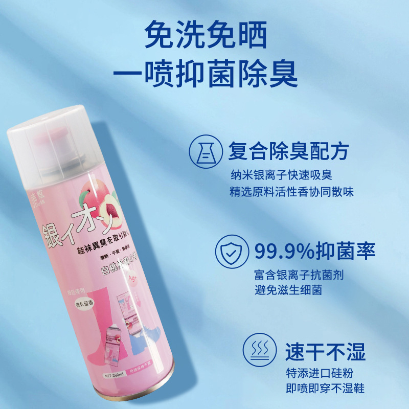 Спрей-дезодорант для обуви и носков с ионами серебра устраняет запах ног, освежает воздух и устраняет запах пота в обуви и обувных шкафах.