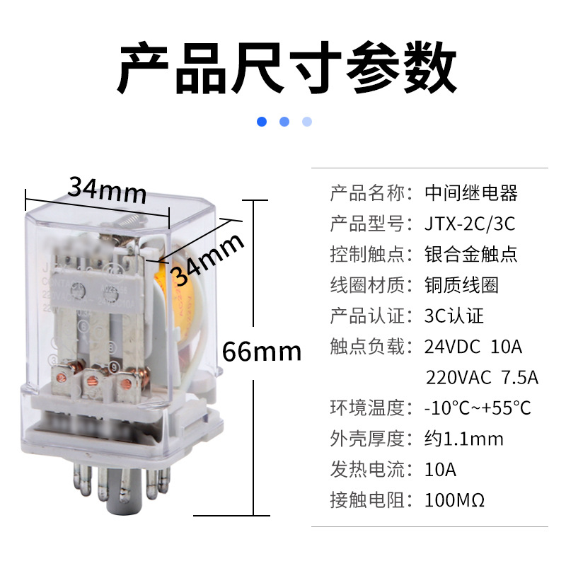 Маленькое промежуточное универсальное реле JTX-2C/3C DC12V DC24V AC220V серебряный контакт круглый 8/11 pin