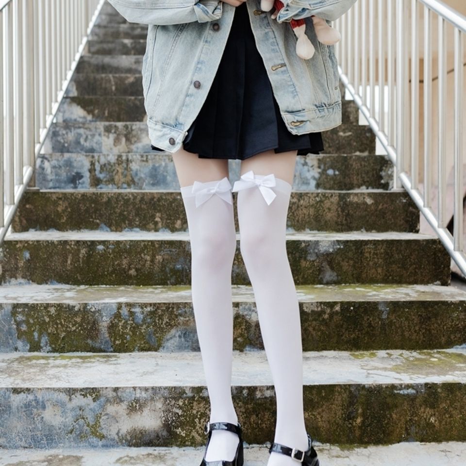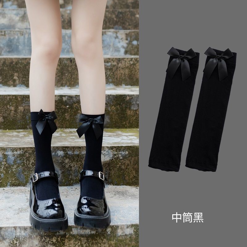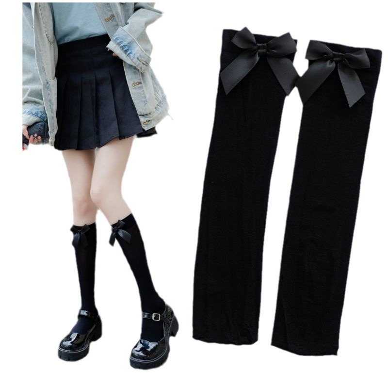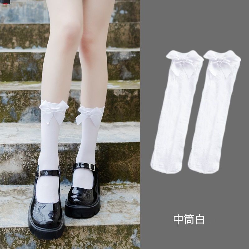 Летние тонкие милые носки в японском стиле, детские носки средней длины, невысокие носки JK, белые носки выше колена в стиле Лолиты с бантом