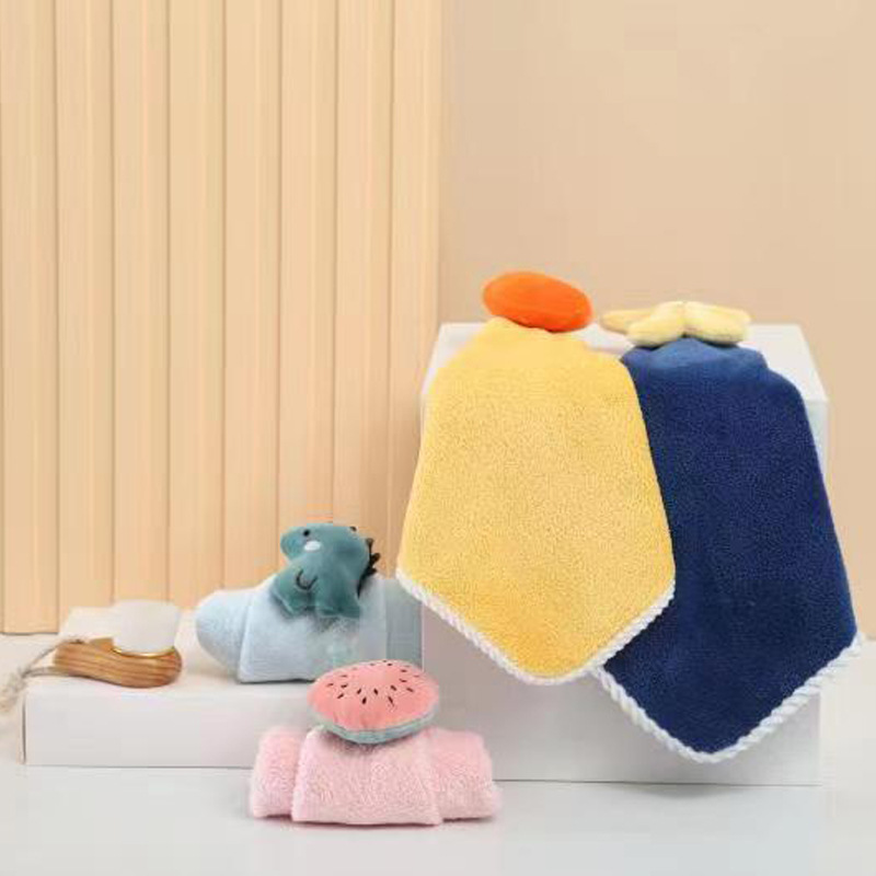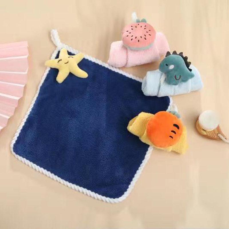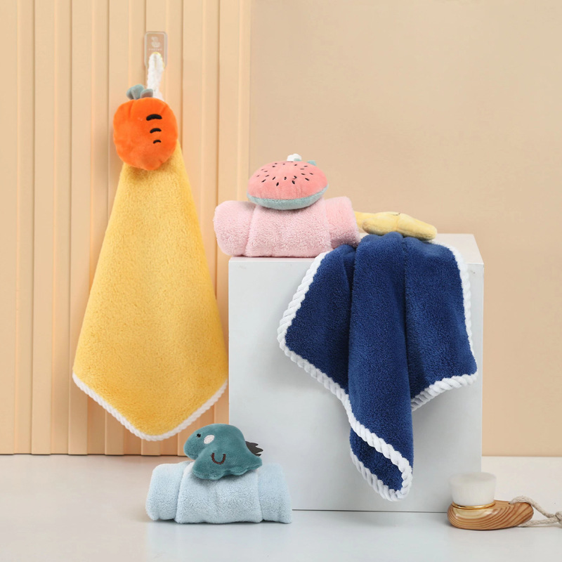 Подвесное мультяшное полотенце для рук Кухня Ванная комната Коралловое флисовое полотенце для рук утолщенное Впитывающее маленькое полотенце для детей