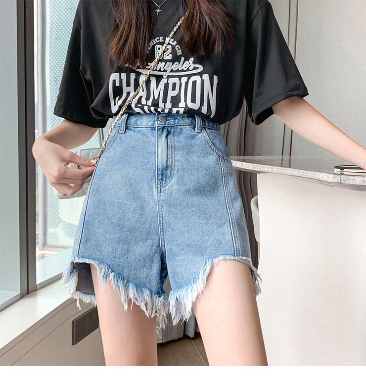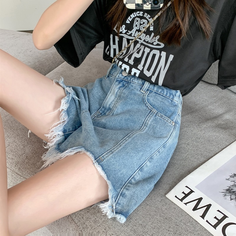 后松紧腰围 破烂毛边短裤 支持一件代发
