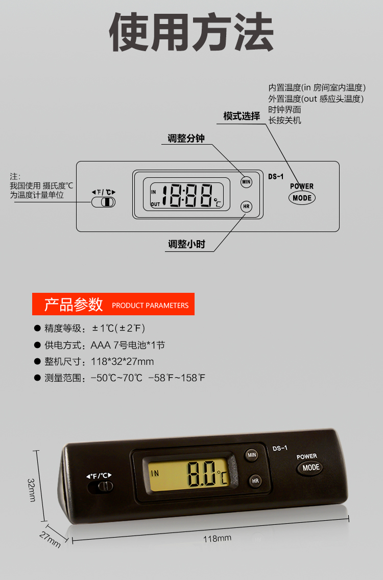 Новый мини-Встроенный электронный цифровой дисплей термометр для аквариума водонепроницаемый лобовый DS-1 термометр с большим экраном