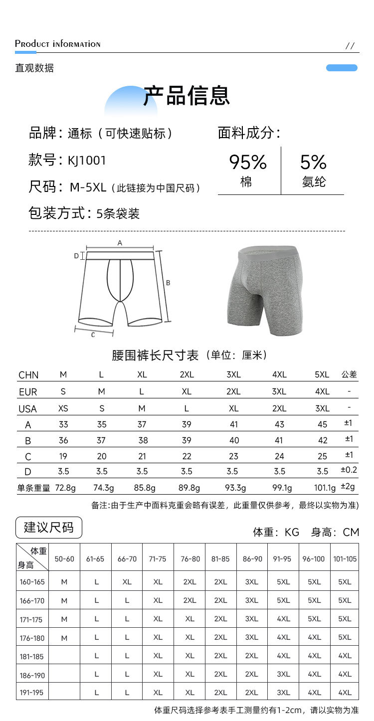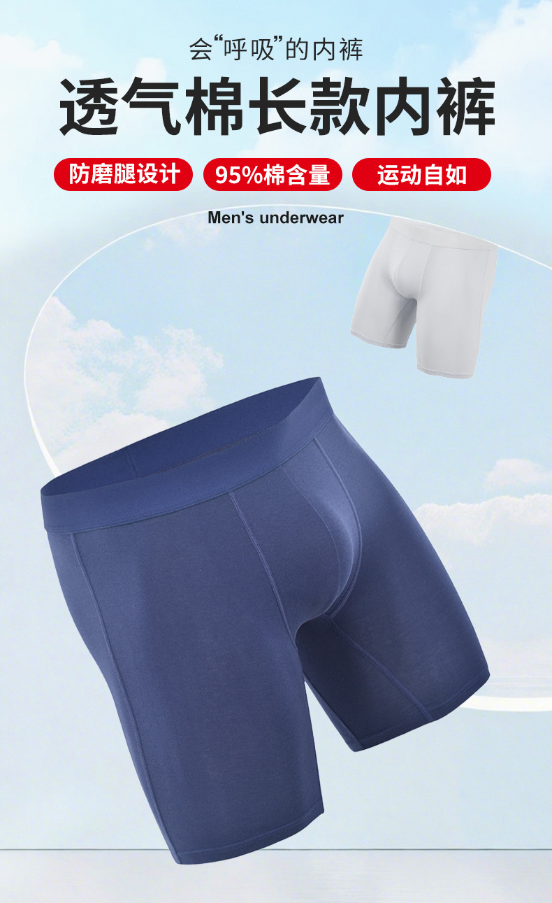 Противоизносные трусы-боксеры из чистого хлопка, модное американское нижнее белье Amazon, трансграничное оптовое спортивное длинное европейское и американское нижнее белье для мужчин