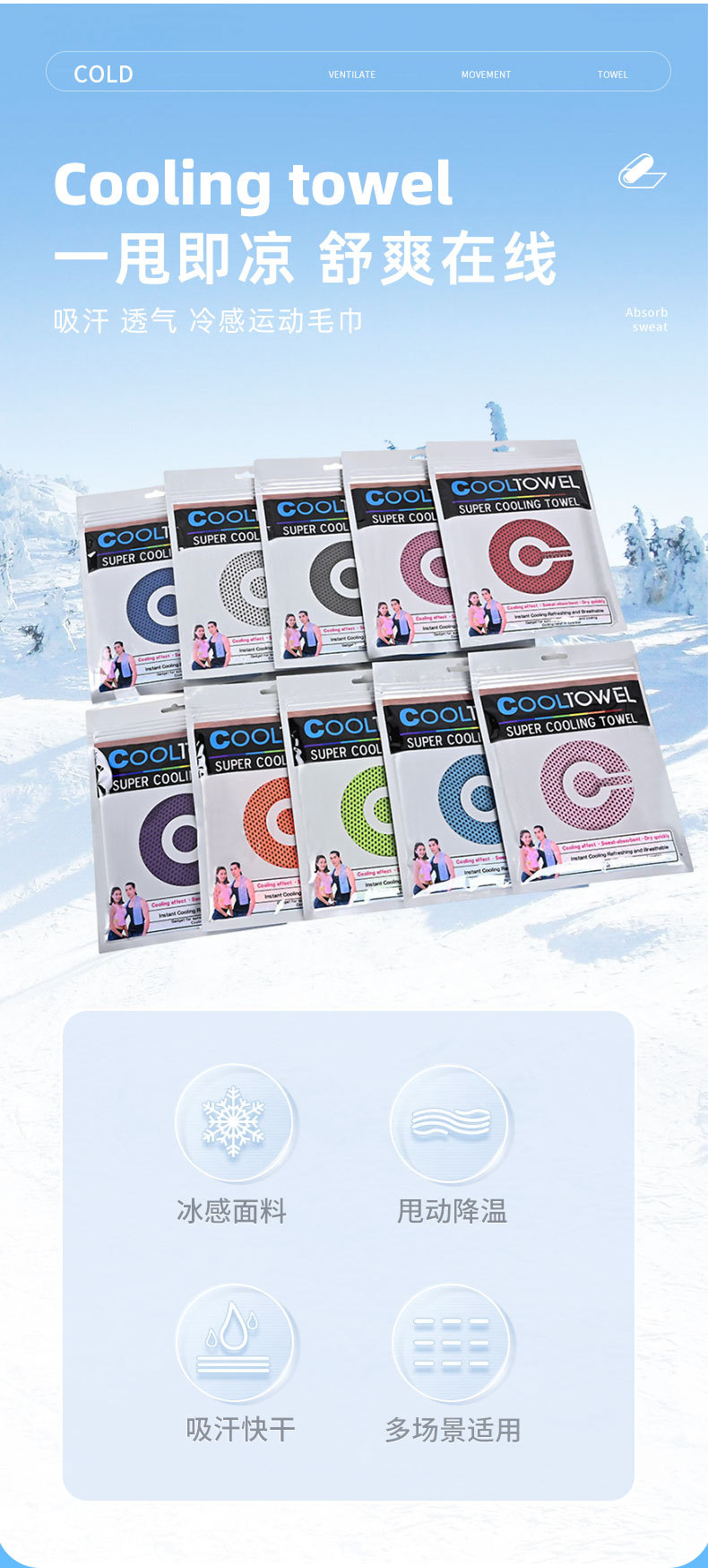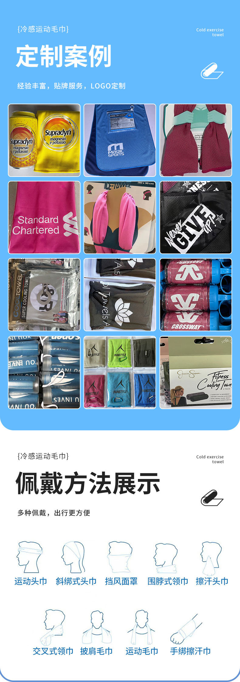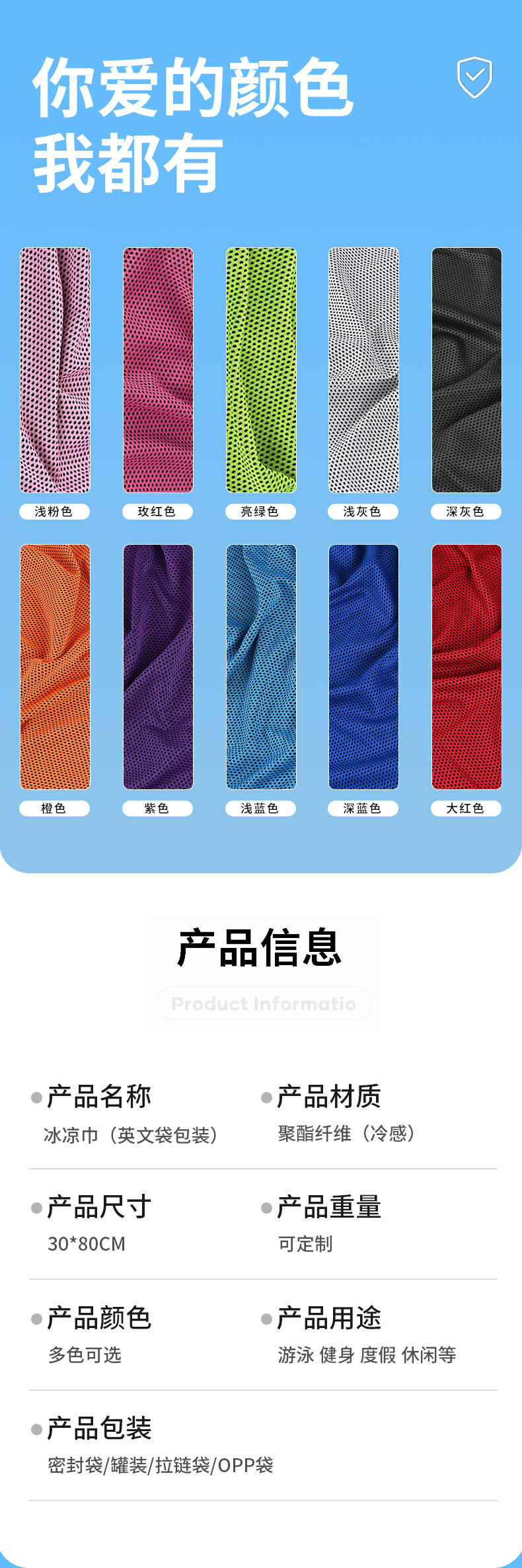 冰凉巾支持定制,提供打样服务,可来图来样定制,各种logo、数字、宣传文案,高效一对一服务;