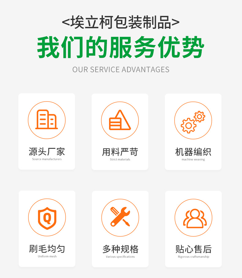 每个规格对应每包的数量仅供参考,机器计数,仅供参考。我们在生产线上下来时按每包2公斤计重。因为产品是发泡产品,不同批次做出来厚度和质量不完全相同,厚度厚,每包的数量会变少,厚度薄,每包的数量就会变多。又因为发泡产品在打包捆扎及货物运输的过程中会有货损(跑气),在您收到货物时重量也会相对减少(一般控制在10%以内)。用户在收到货品后不能用重量、质量和货品数量有差异而作为退货的理由,如果非要退换货买方要承担来回运费。如果拍下,就视同您认可我们的声明。如果是因为我们发错了规格或颜色导致您根本无法使用,则由我们负责退换货的费用。网套产品是微利产品,利润连快递费都比不上,希望您能谅解。我们从事这一行业许多年了,得到了绝大多数客户的认可。我们将一如既往地与广大客户携手合作,共同发展。