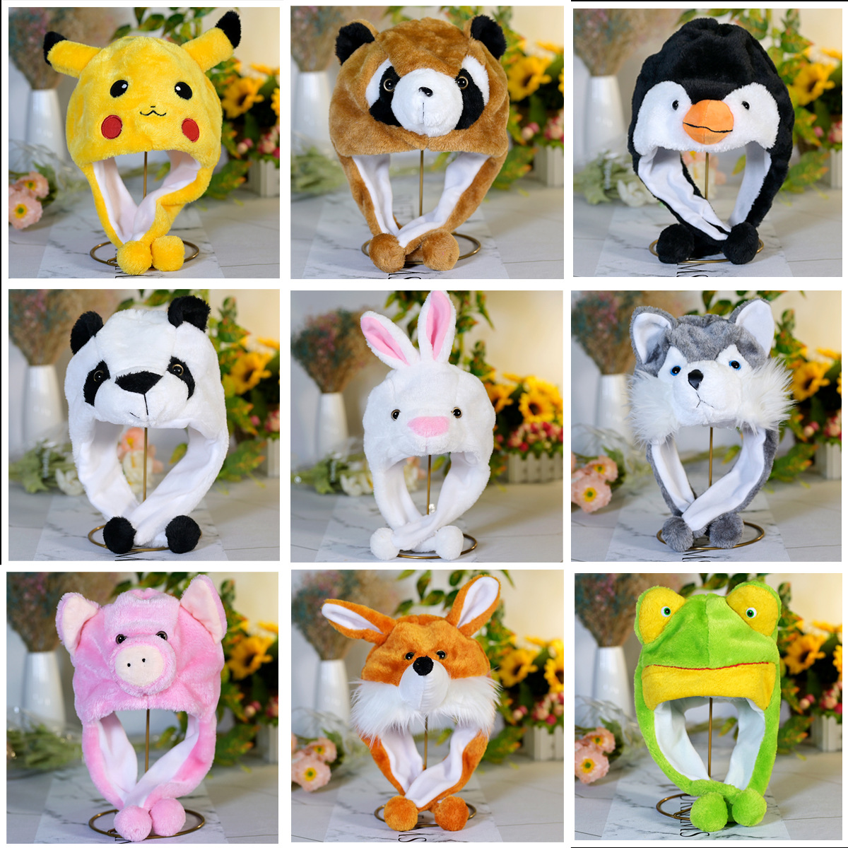 Утолщённая красная панда; белый кролик; розовый кролик; серый кролик; Пикацю; пингвин; серый хаски; КТ кот; панда; розовая свинья; коричневый енот; петух; слон; лиса; жук; горилла; лев; жираф; Мэри Кэт; коричневый леопард; коричневая собака; коричневая корова; Розовая Лотти; коричневый хаски; белый тигр; белый медведь; коричневый тигр; белый леопард; серый енот; белка; лягушка; Желтая утка (цветочные глаза); акула; розовое баранчиха; зеленый дракон; Бежевый ягненок; осел; крокодил; белое ягненок; пони; синий дельфин; коричневая панда; Микки Маус; большой злой волк; Стежок; обезьяна; змея; дальматинец; Западный хайленд; Маленькая желтая утка (стиль с большим ртом); Дораемон; красная птица
