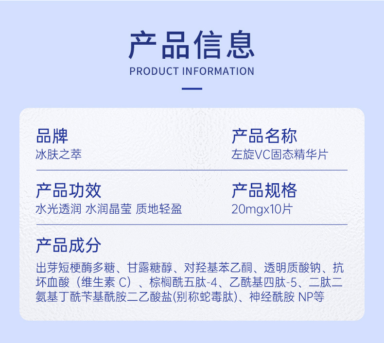 Таблетки твердой эссенции L-VC (10 таблеток в упаковке); Таблетки твердой эссенции с экстрактом ледяной кожи L-VC (10 таблеток в коробке); Gelianna L-витамин С сублимированные таблетки (10 таблеток/упаковка); SEOMOU L-VC флеш-выпуск лиофилизированные таблетки (10 таблеток/упаковка)