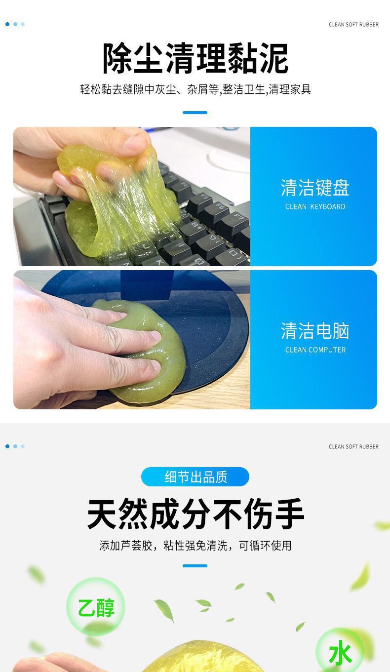 6.清洁软胶放在物体表面上不能超过两分钟,以免软胶黏入缝隙内部拉不出来,也不要薄薄一层铺在物体表面,清洁软胶会卡在缝隙里,应该轻轻按压后拉起,即可清洁干净灰尘;