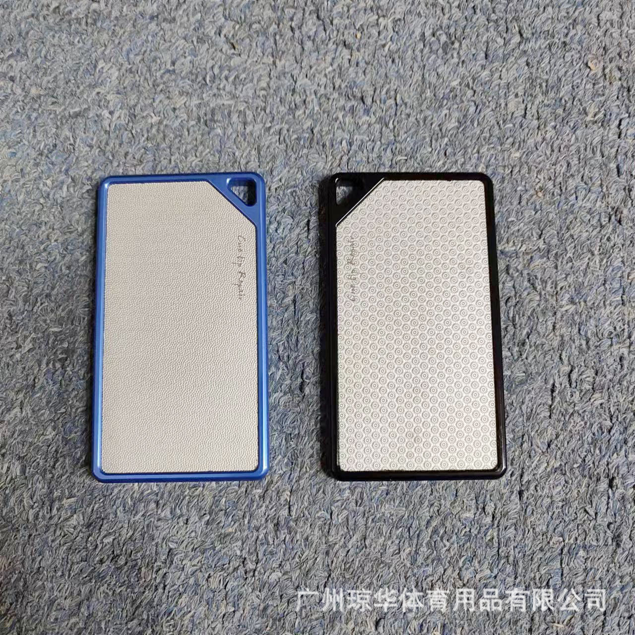 铝合金材质,1面粗打磨,1面细打磨,有挂钩孔设计,9*5*0.6cm,净重56g;