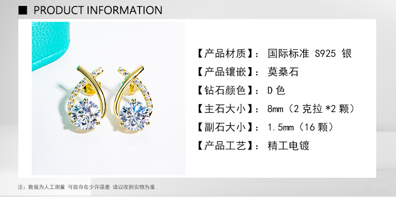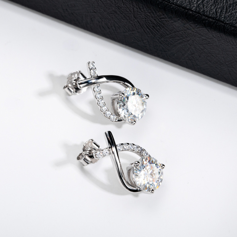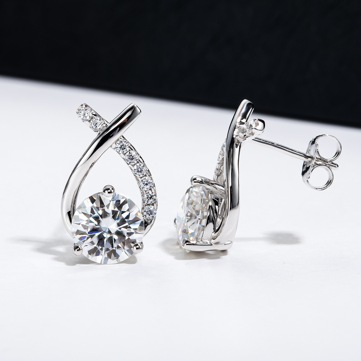 Серьги S925 с муассанитом 8,0 мм в форме рыбьего хвоста