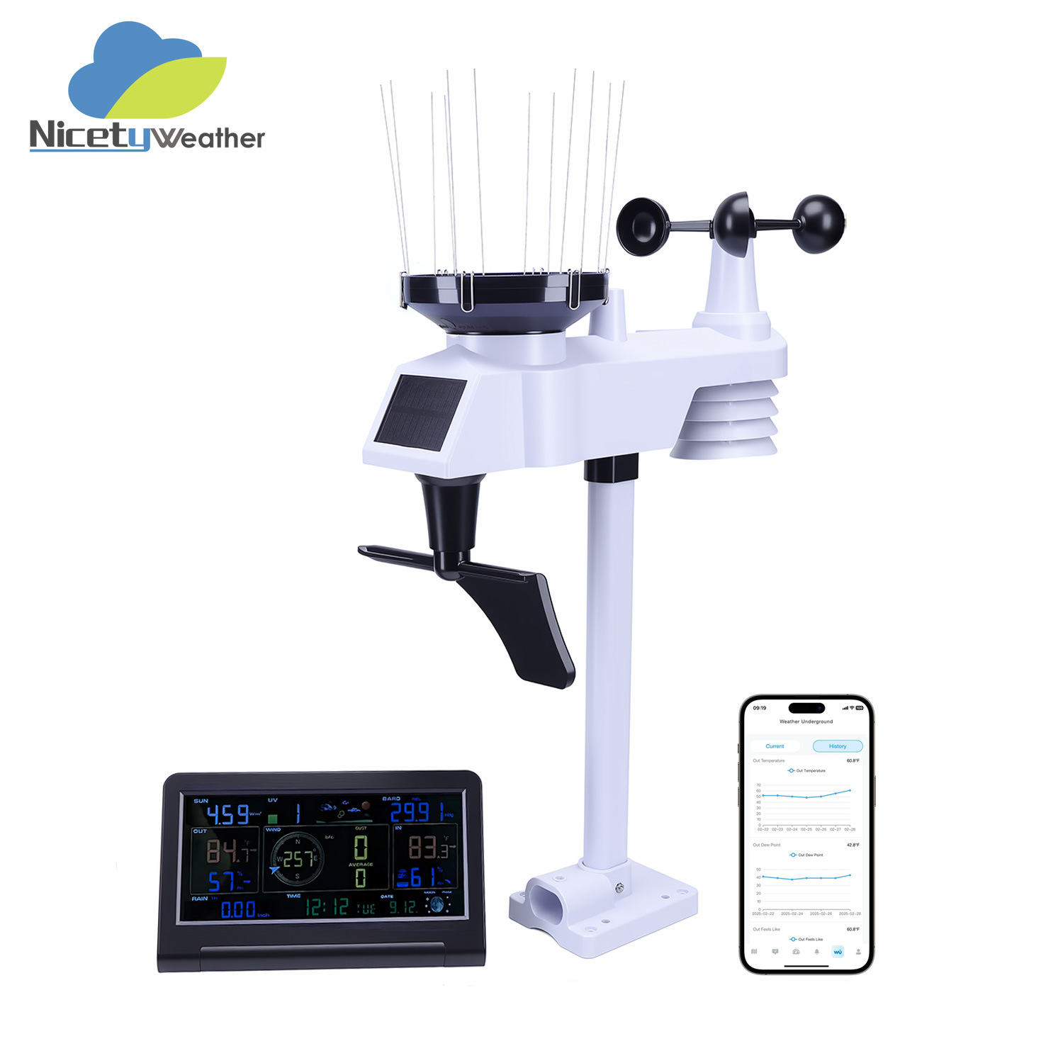 Беспроводная метеостанция с Wi-Fi, функция «семь в одном», анемометр, дождемер, температура и влажность, осветометр