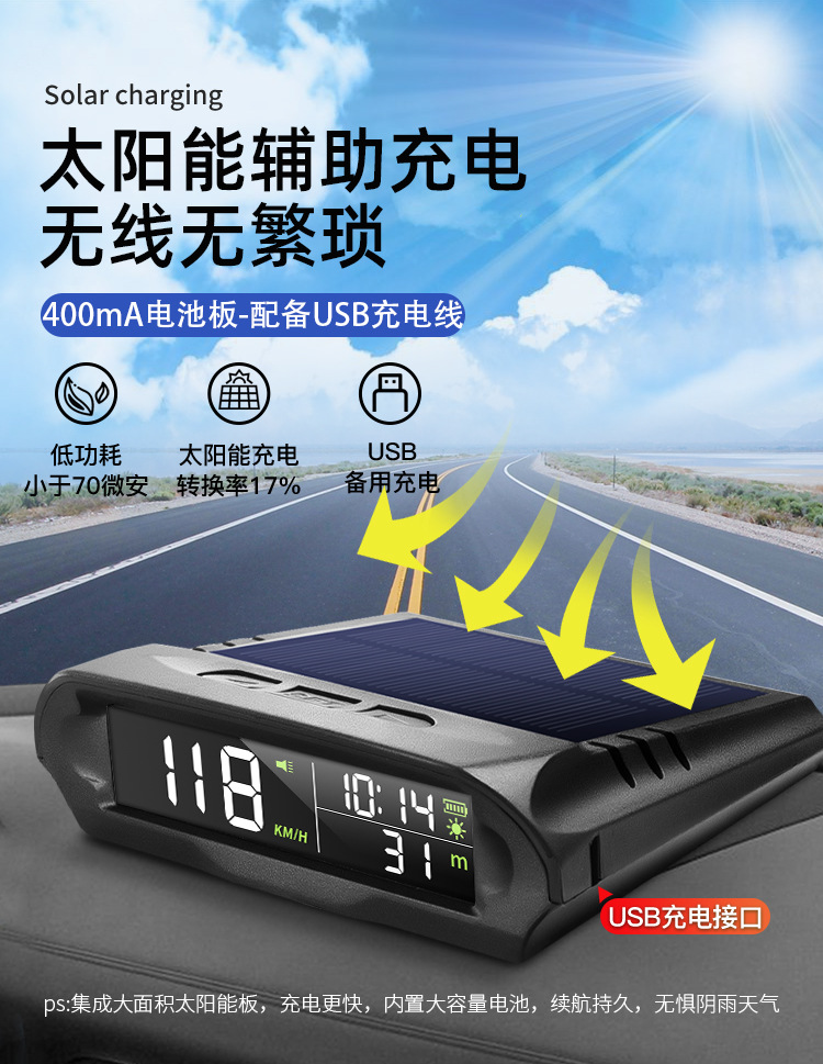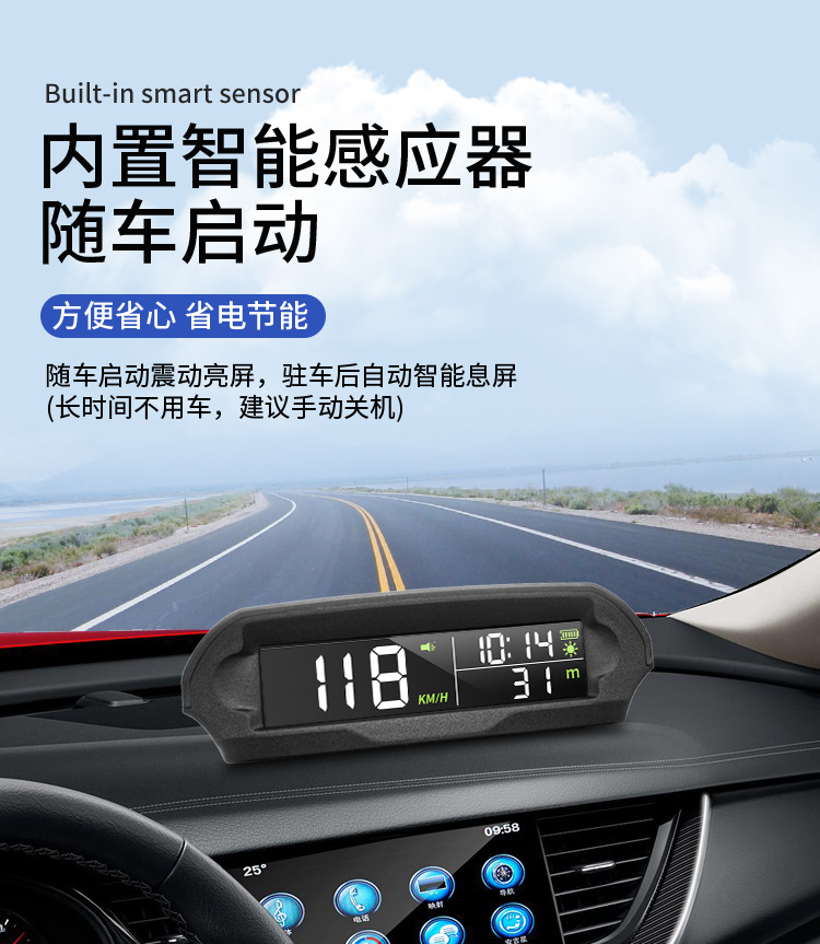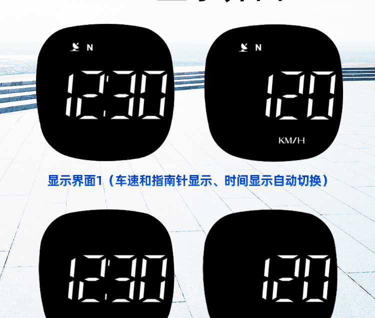 Автомобильный и мотоциклетный GPS-дисплей HUD с функцией Beidou: спидометр, часы, компас, одометр и навигационный проекционный дисплей.