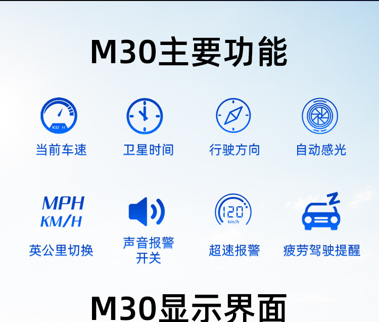 Версия M30 с белым светом (общий для моделей-5-24VUSB-источник питания); Версия с зеленым светом M30 (общий для моделей-5-24VUSB-блок питания); X98-Солнечный измеритель скорости и высоты автомобиля