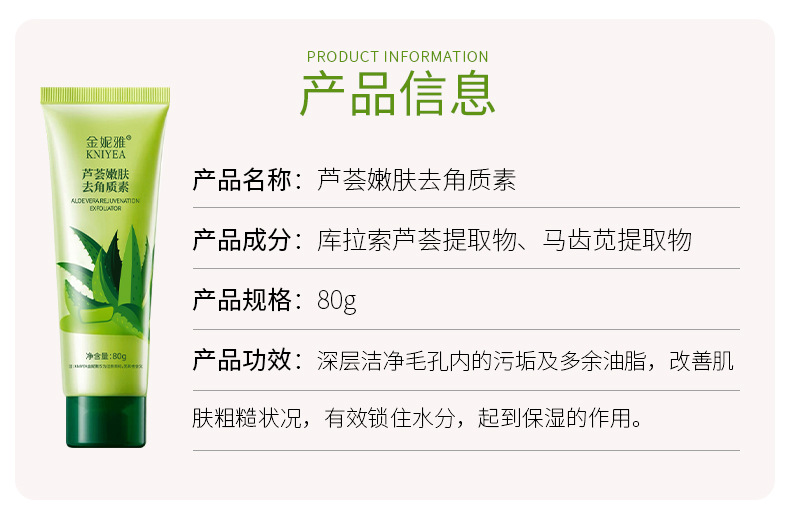 Jinnia Aloe Vera Отшелушивающий гель Глубокое очищение Уход за лицом Цельный оптовый завод Прямые продажи Прямая поставка