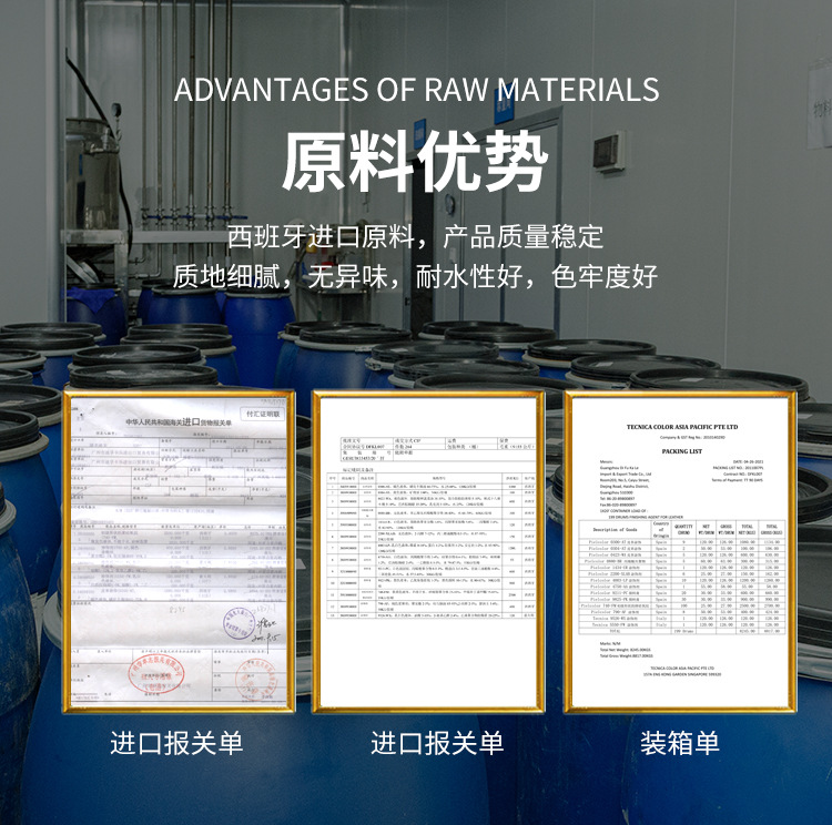 公司主营皮革化工、皮革护理产品。生产、批发:皮革成膜树脂系列、固色光亮剂系列、蜡乳液系列、清洁剂系列、手感剂系列、补伤膏系列、阳离子系列、色膏染料水系列、各类皮革助剂等皮革涂饰剂产品。产品性能稳定,原材料有部分进口及国内自主研发生产,品质保障,能有效提升皮革等级。我们的客户涉及品牌洗衣连锁、皮革生产、奢侈品皮具护理加盟培训机构,是鞋材化工贸易商、皮革化工贸易商、奢侈品皮具护理培训机构、修鞋店、日化商场、洗衣干洗店、汽车座垫、家具沙发维修店的合作伙伴!价格合理,深受广大客户的好评!