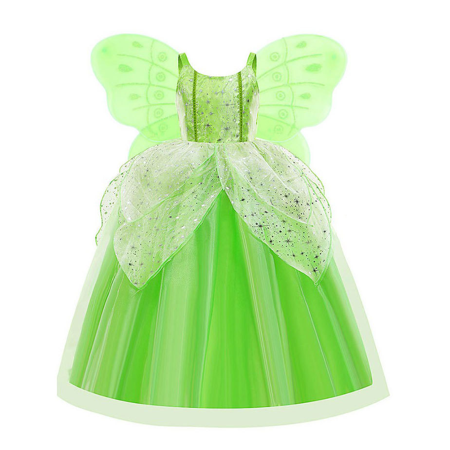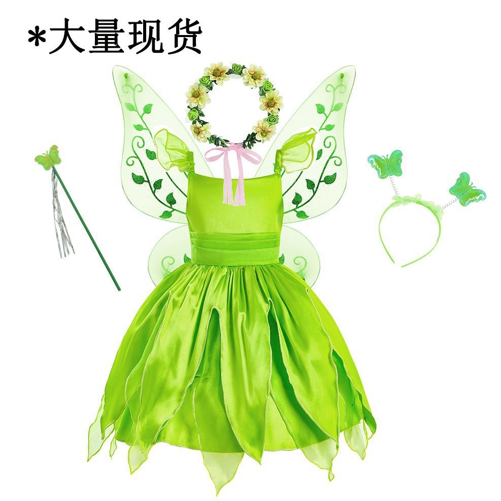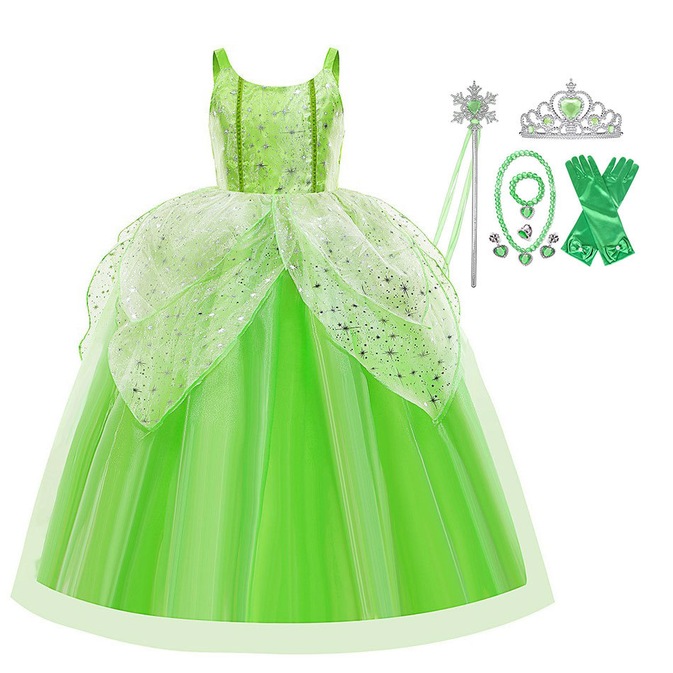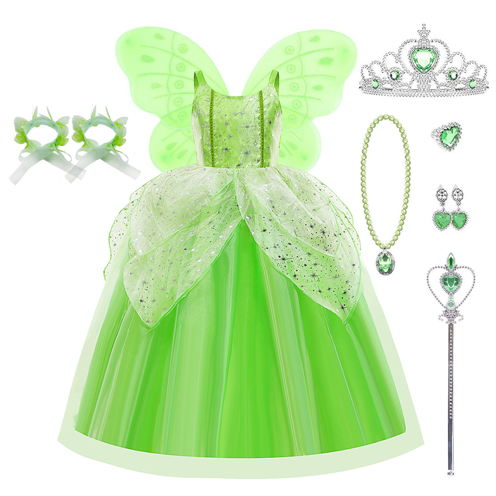 Хэллоуин Новое зеленое платье эльфа Принцесса Тиана Тинкер Белл Детский костюм поколение волос