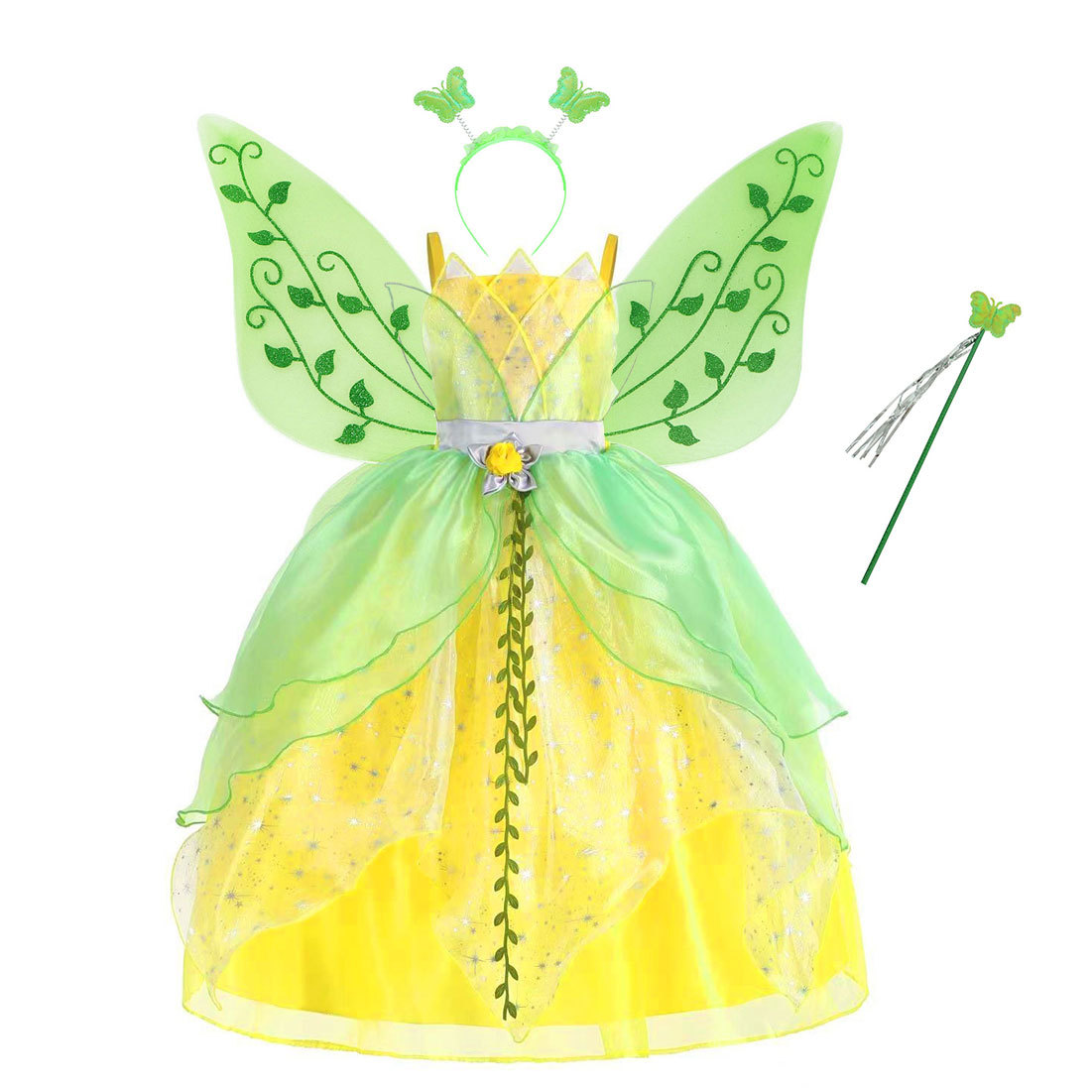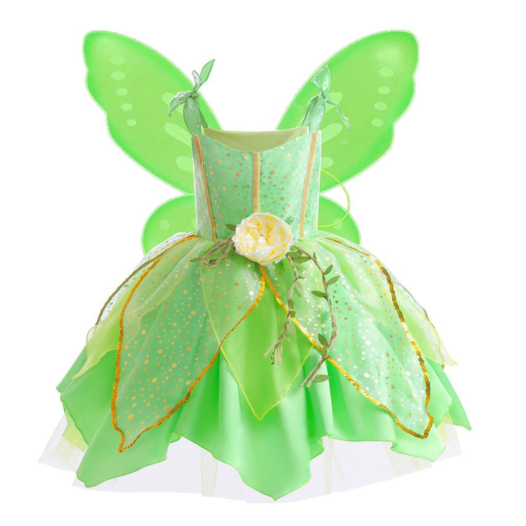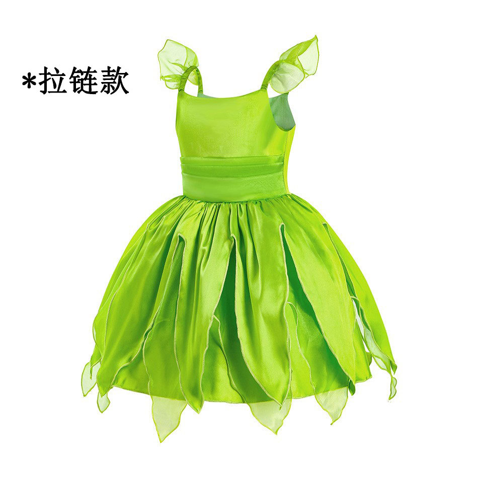 Хэллоуин Новое зеленое платье эльфа Принцесса Тиана Тинкер Белл Детский костюм поколение волос