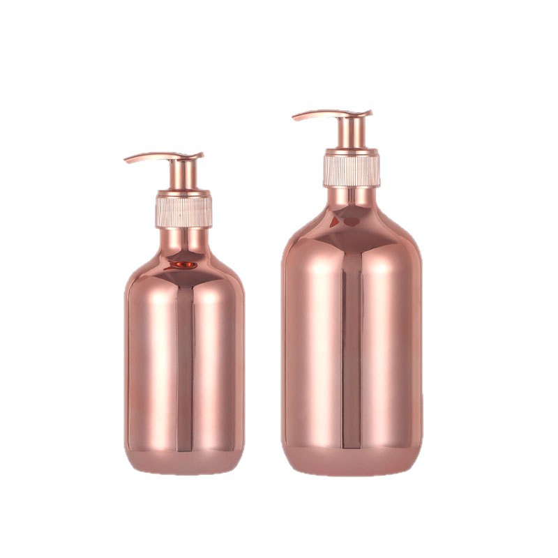 现货300ml-500ml圆肩银色电镀洗发水瓶金色沐浴露瓶乳液按压瓶PET