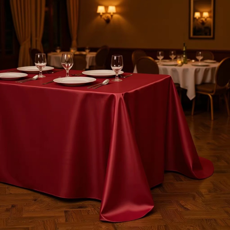 Фабрика прямые поставки высокого класса отель банкет Свадебная сцена сплошной цвет Прямоугольная Глянцевая Атласная Ткань Скатерть атласная Скатерть