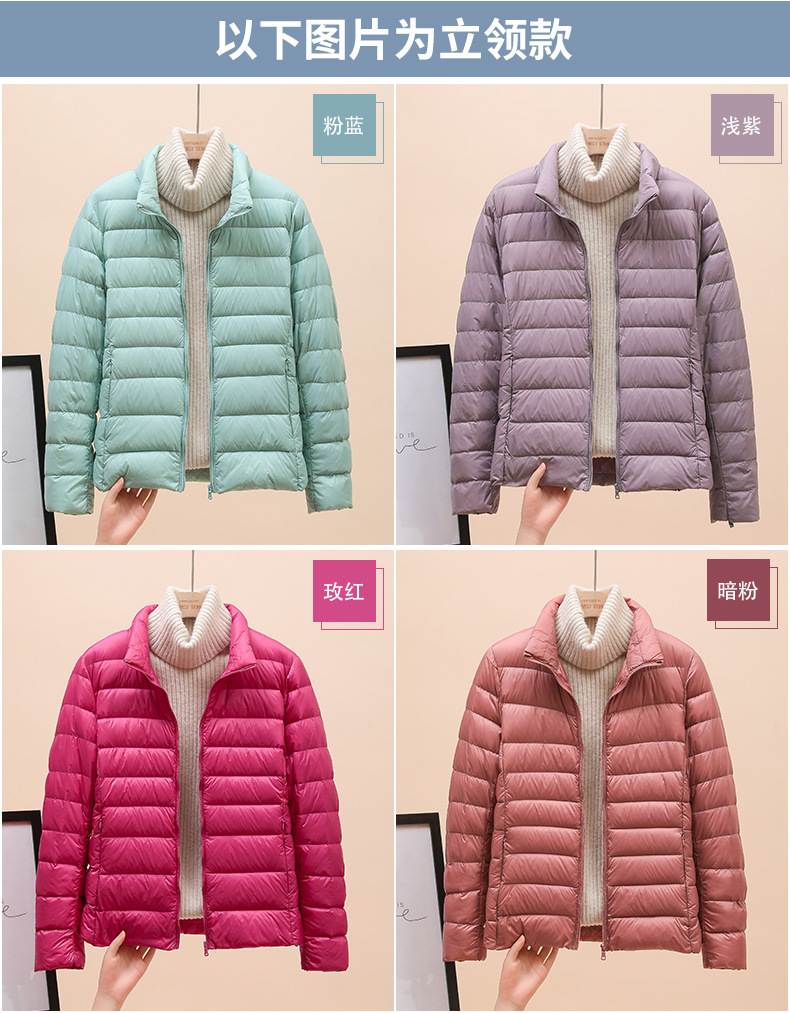 Черный (воротник стойки); Черный (с капюшоном); Белый (воротник стойки); Белый (с капюшоном); Красное вино (стоячий воротник); Красное вино (с капюшоном); Большой красный (воротник стойки); Большой красный (с капюшоном); Фасоль зеленый (воротник стойки); Фасоль зеленый (с капюшоном); Розовый (воротник стойки); Розовый (с капюшоном); Розовый красный (воротник стойки); Розовый красный (с капюшоном); Фиолетовый (воротник стойки); Фиолетовый (с капюшоном); Хаки (воротник стойки); Хаки (с капюшоном); Озеро Голубое (воротник стойки); Озеро Голубое (с капюшоном); Тибетский синий (стоячий воротник); Тибетский синий (с капюшоном); Оранжевый (воротник стойки); Оранжевый (с капюшоном); Туман синий (воротник стойки); Туман синий (с капюшоном); Светло-фиолетовый (воротник стойки); Светло-фиолетовый (с капюшоном); Фруктовый зеленый (с капюшоном)
