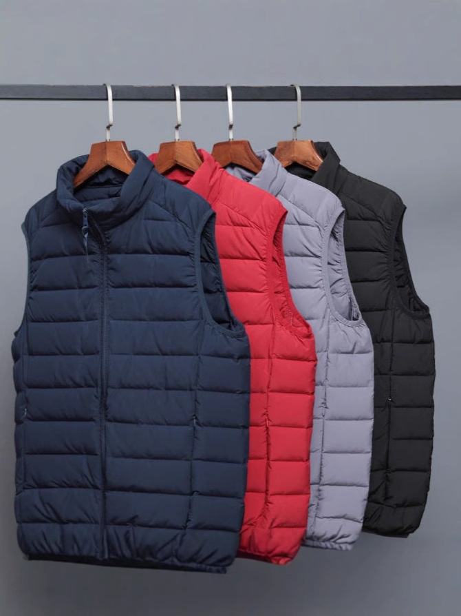 Мужской короткий тонкий бесшовный лёгкий жилет-пуховик для путешествий