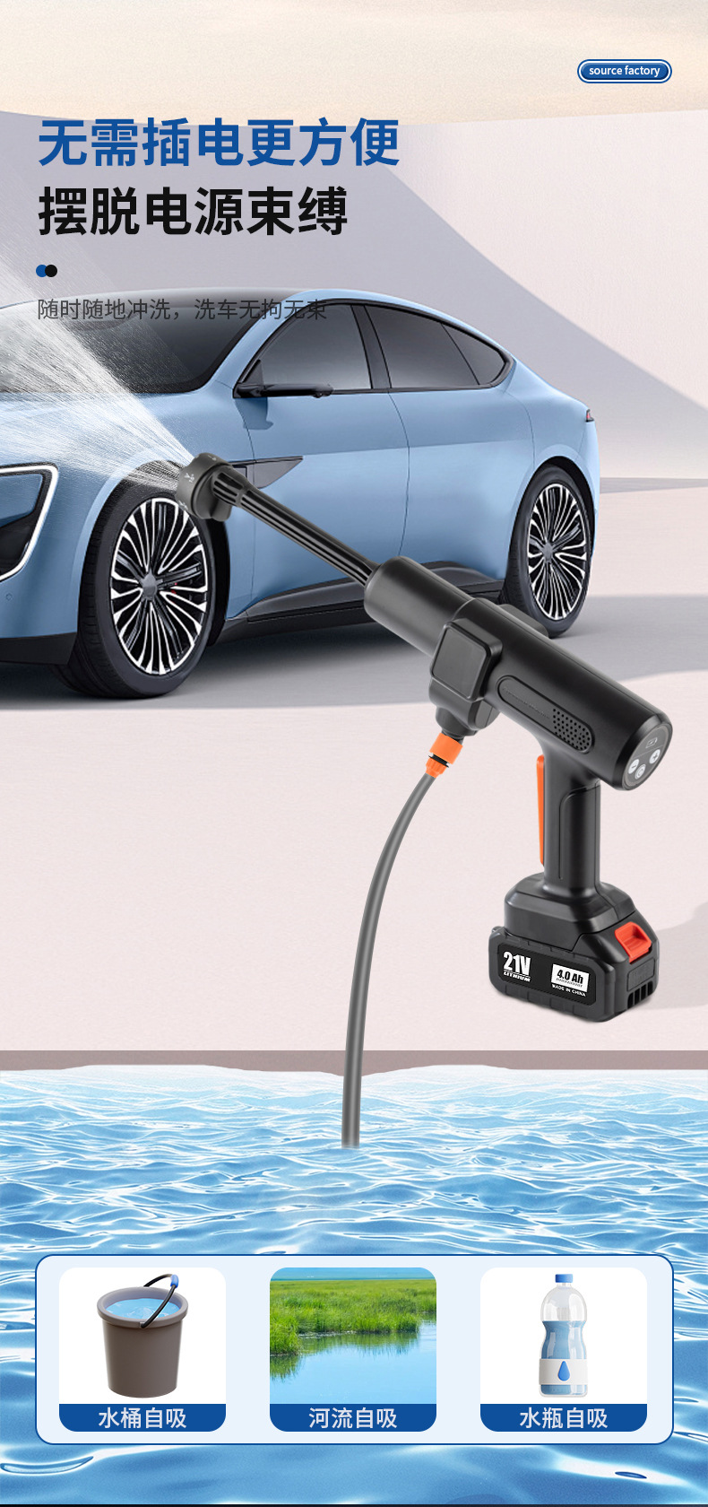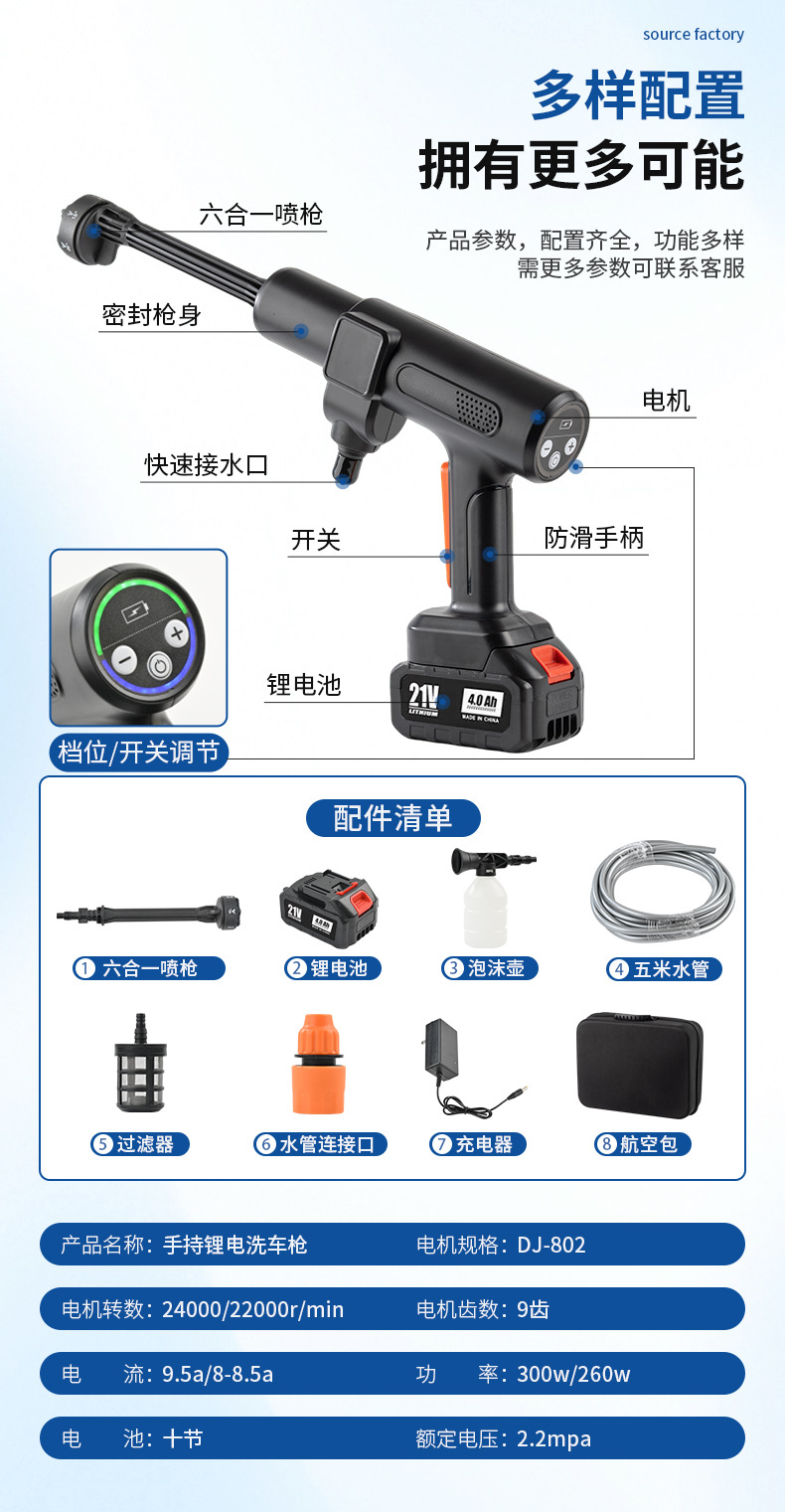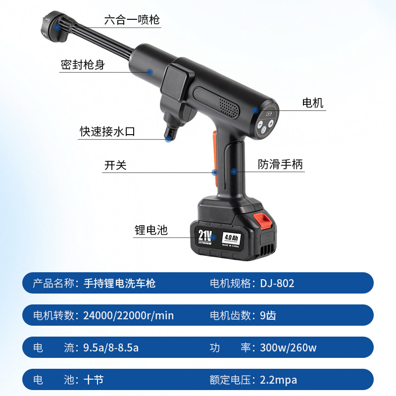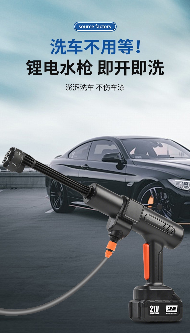 Ручной пистолет для мойки автомобилей с литиевой батареей