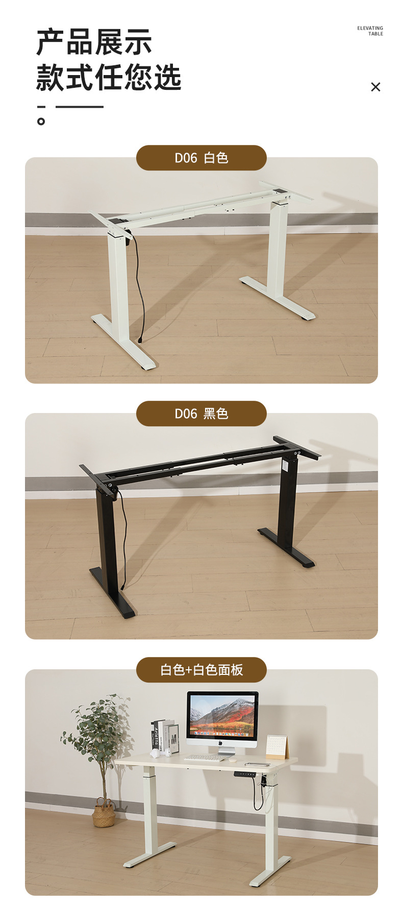 Одномоторная двухсекционная рама стола с телескопической балкой формального черного цвета; Одномоторная двухсекционная рама стола с телескопической балкой формального белого цвета; Одномоторная двухсекционная белая телескопическая рама стола + белый рабочий стол 1200*600*25 мм [синий сапфировый экран]; Одномоторная 2-секционная формальная белая телескопическая балка, рама стола + белый рабочий стол 1200*600*25 мм
