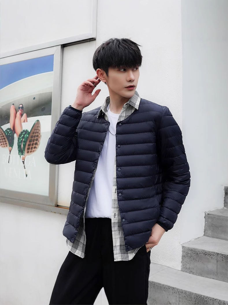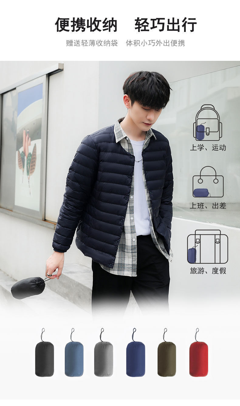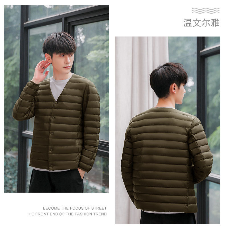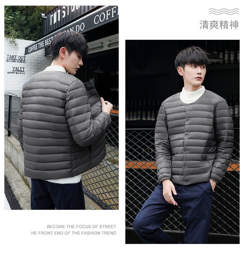Новый зимний тонкий пуховик мужской короткий круглый вырез v-образный вырез теплая подкладка с длинными рукавами тонкая куртка большого размера