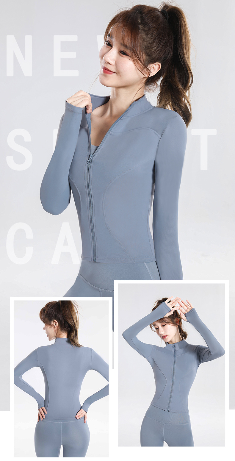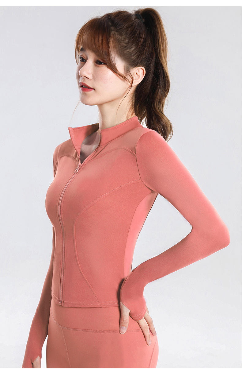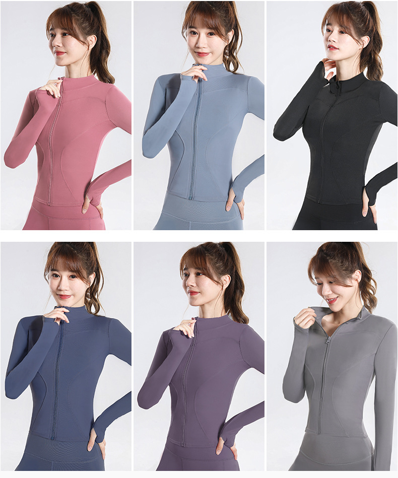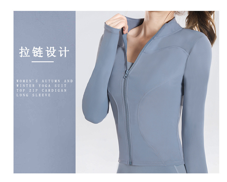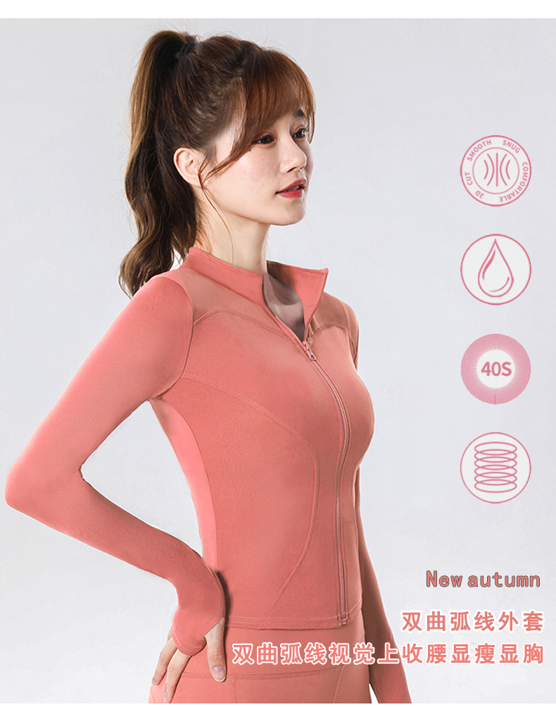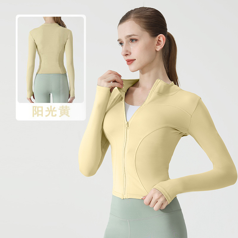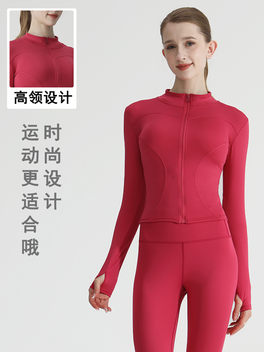 Осенняя высокоэластичная быстросохнущая спортивная куртка для женщин, облегающий топ для йоги с воротником-стойкой, создающий эффект обнаженного тела, обтягивающий фитнес-топ.