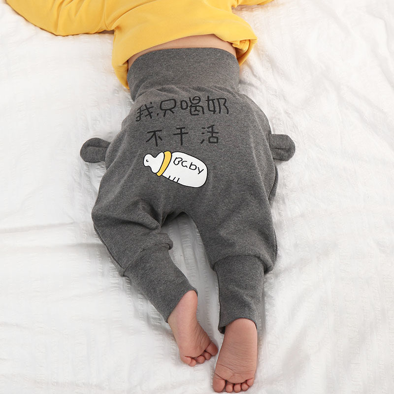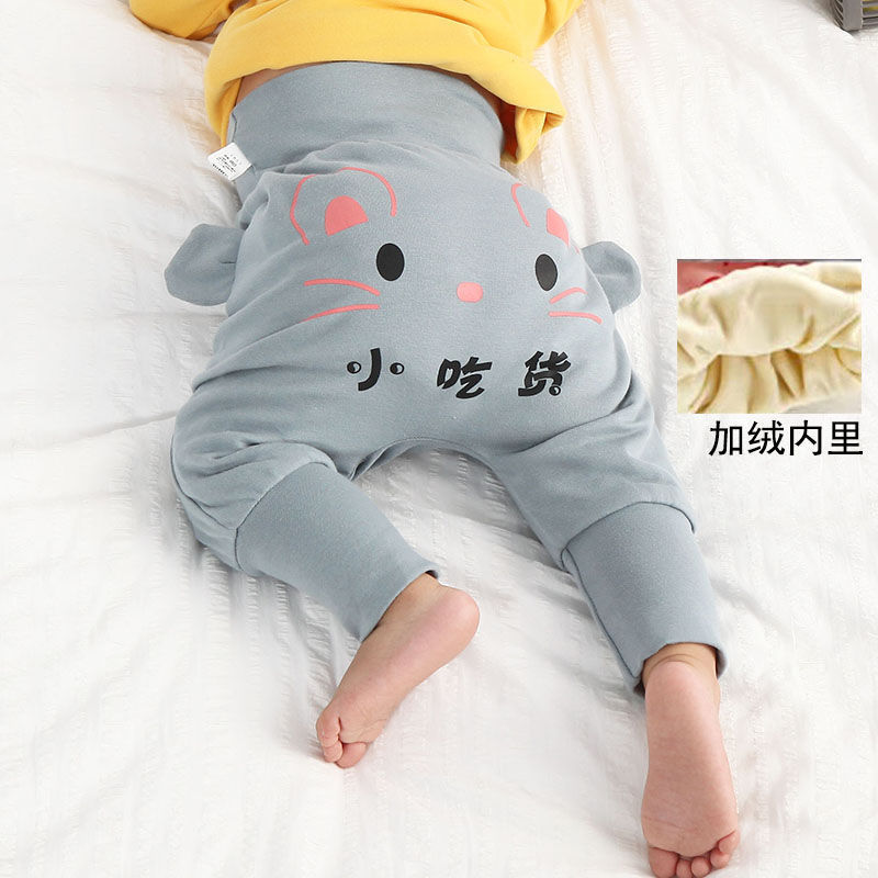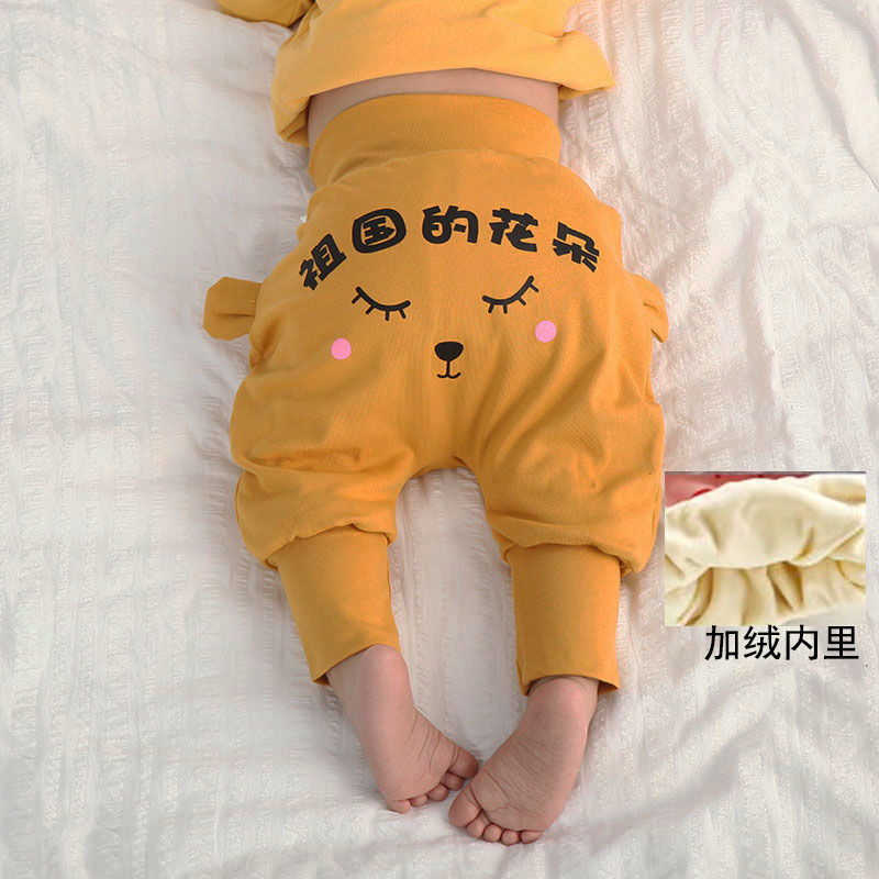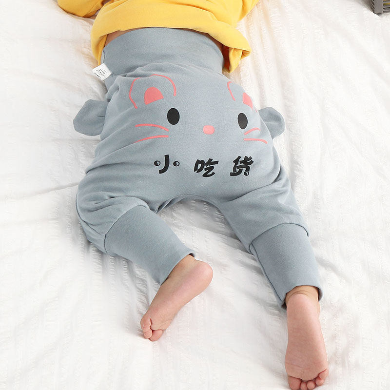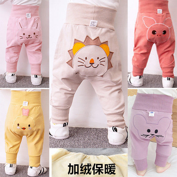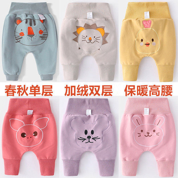 婴儿纯棉春秋大PP裤子男女宝宝高腰护肚裤幼儿屁屁裤透气秋冬长裤