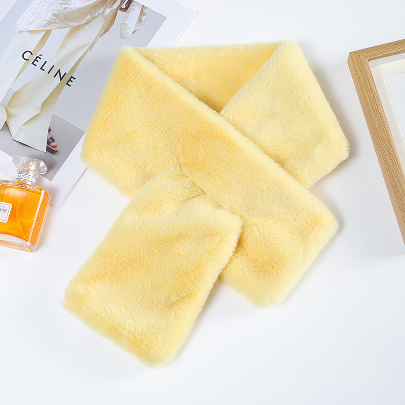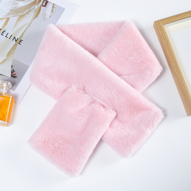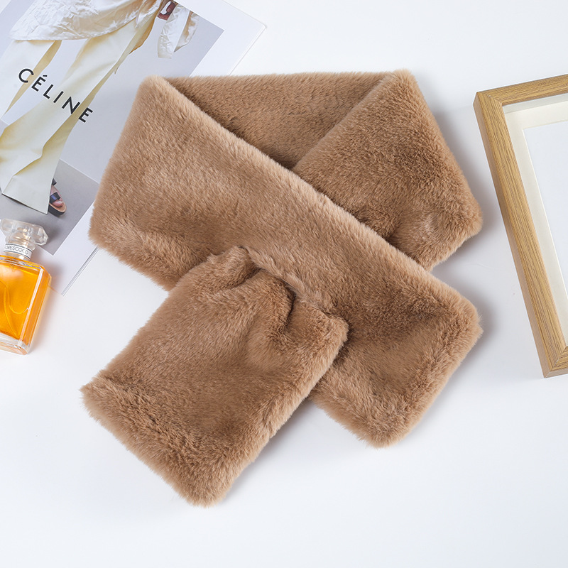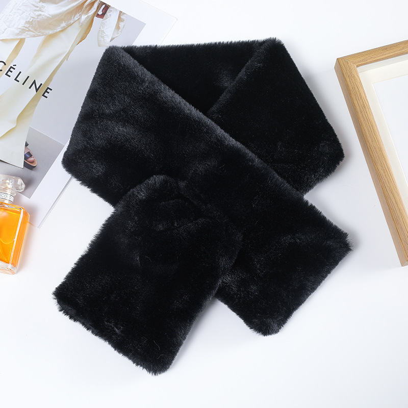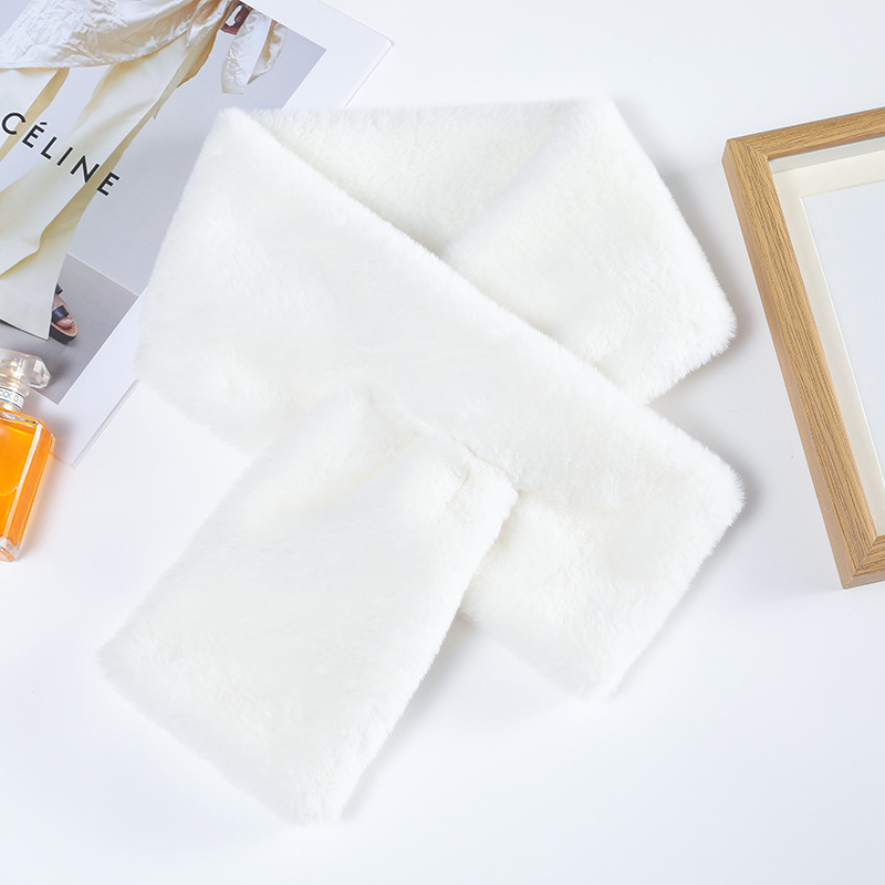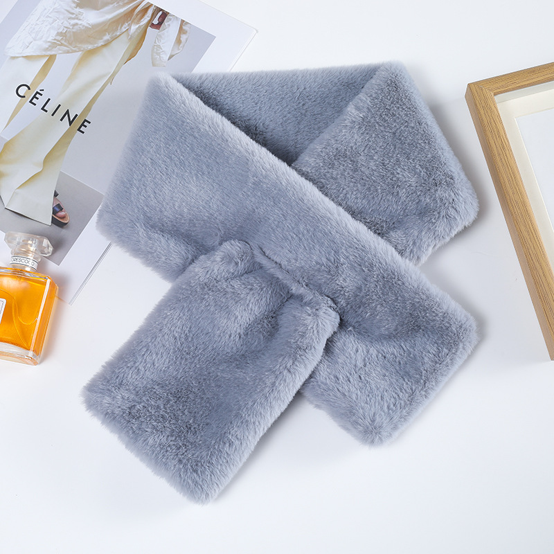 Меховой воротник в Корейском стиле, однотонный крест, Имитация меха кролика Рекс, плюшевый осенне-зимний Универсальный теплый шарф для девочек, шарф, воротник