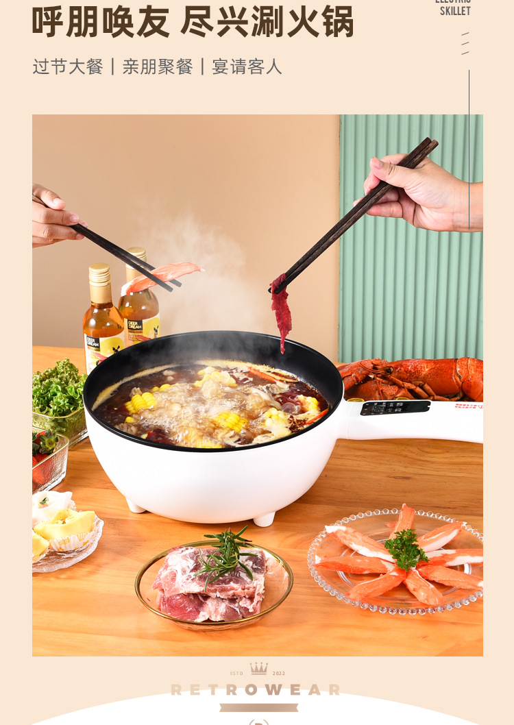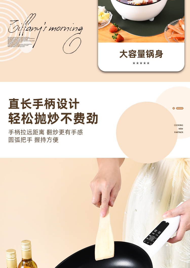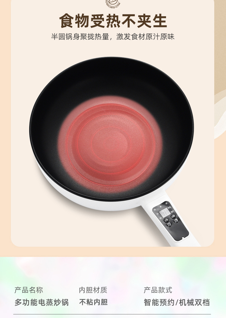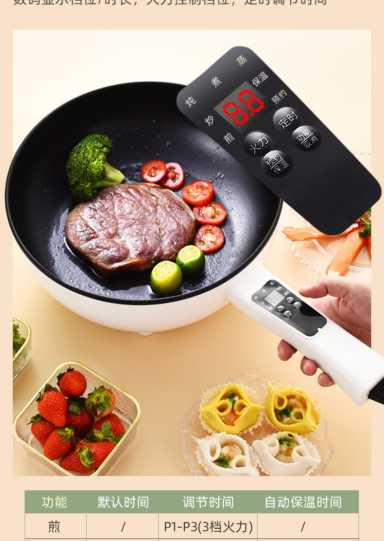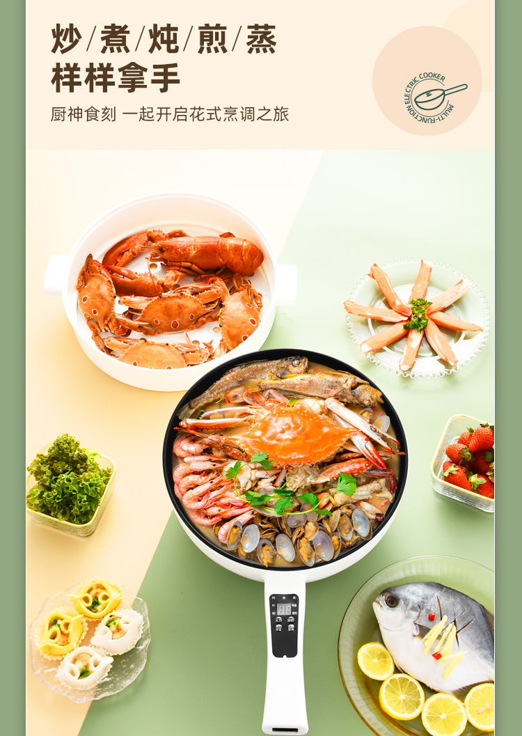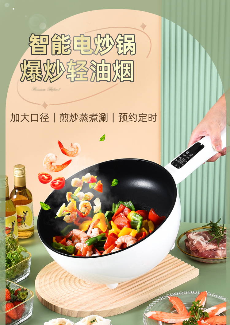 厂家直供家用大容量3-4人电炒菜炒锅一体式煎煮炒多功能电炒锅